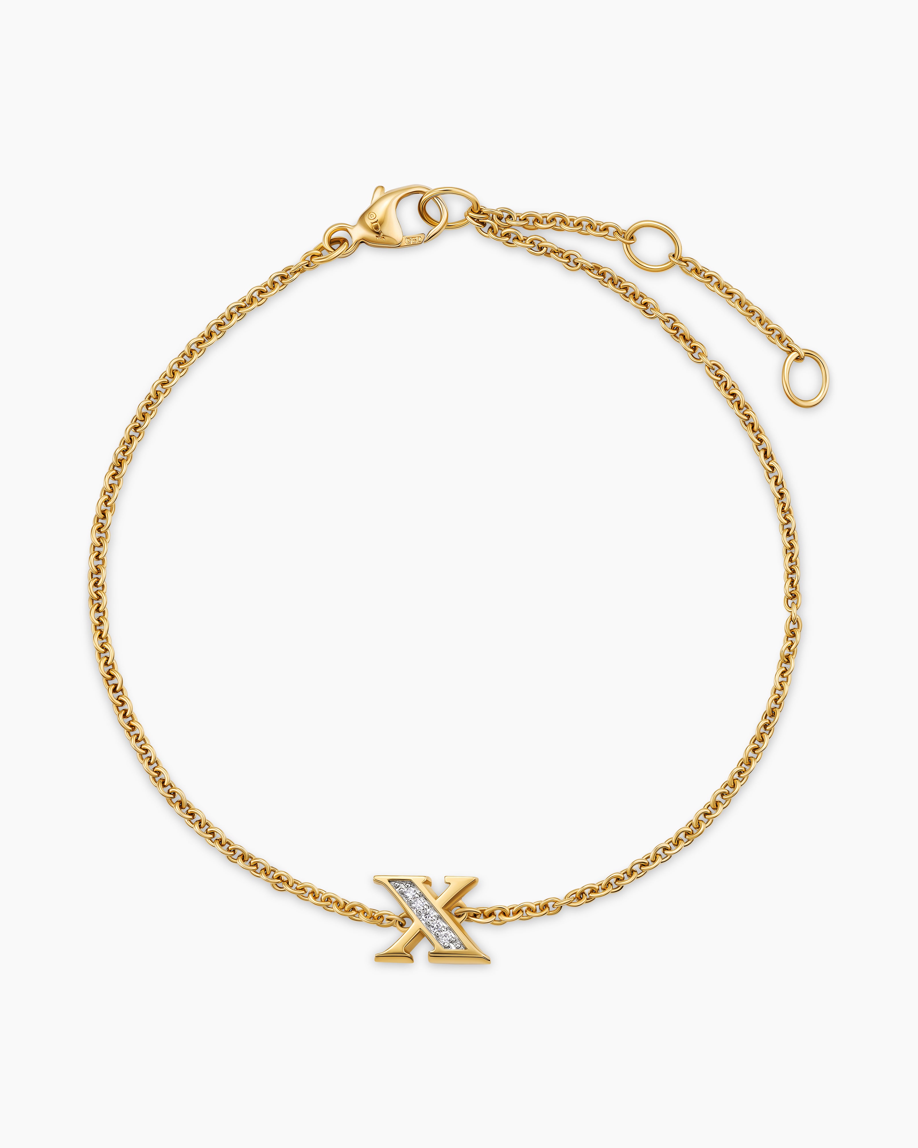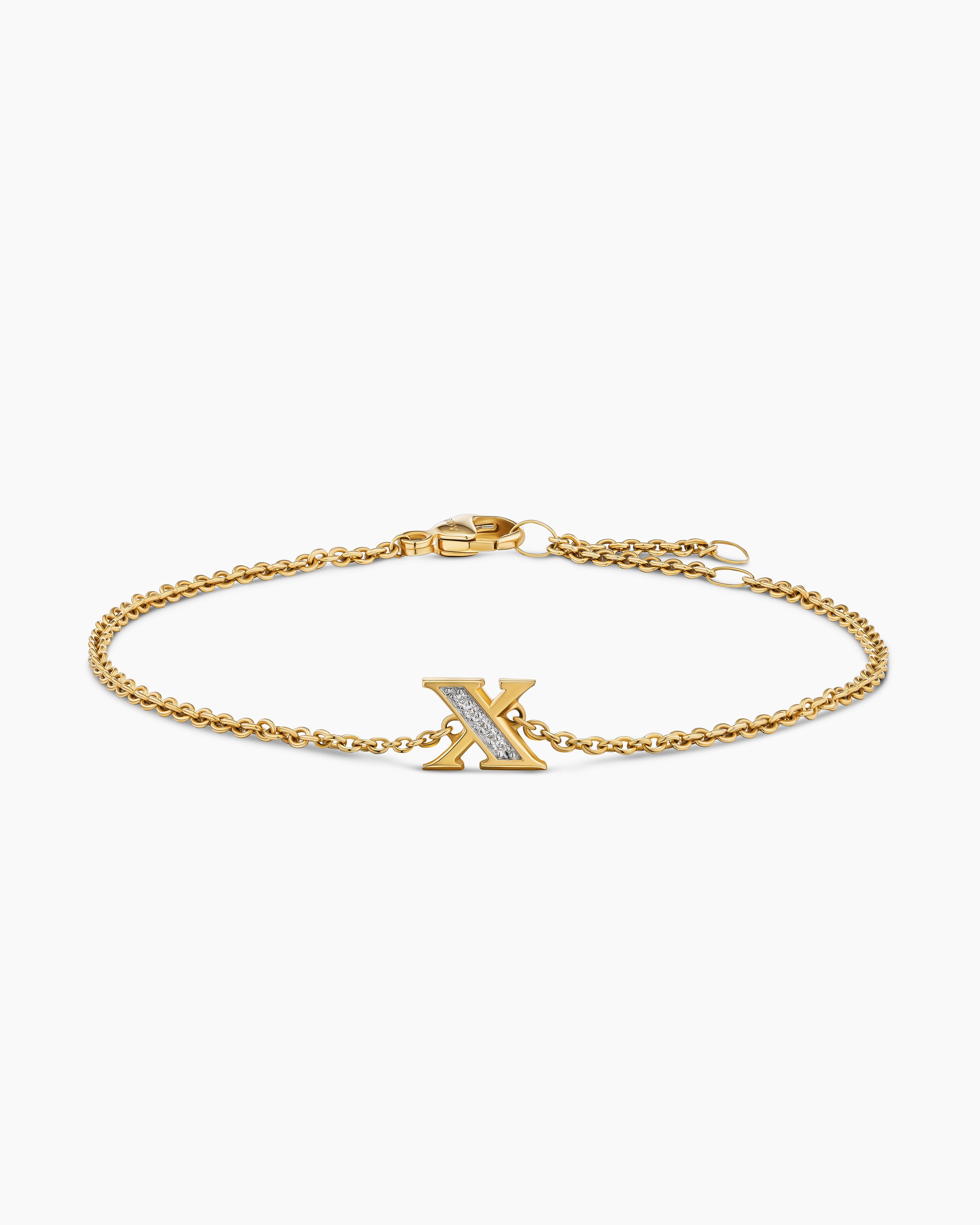 Petite Pavé Initial Chain Bracelet 18K Yellow Gold with Diamond X