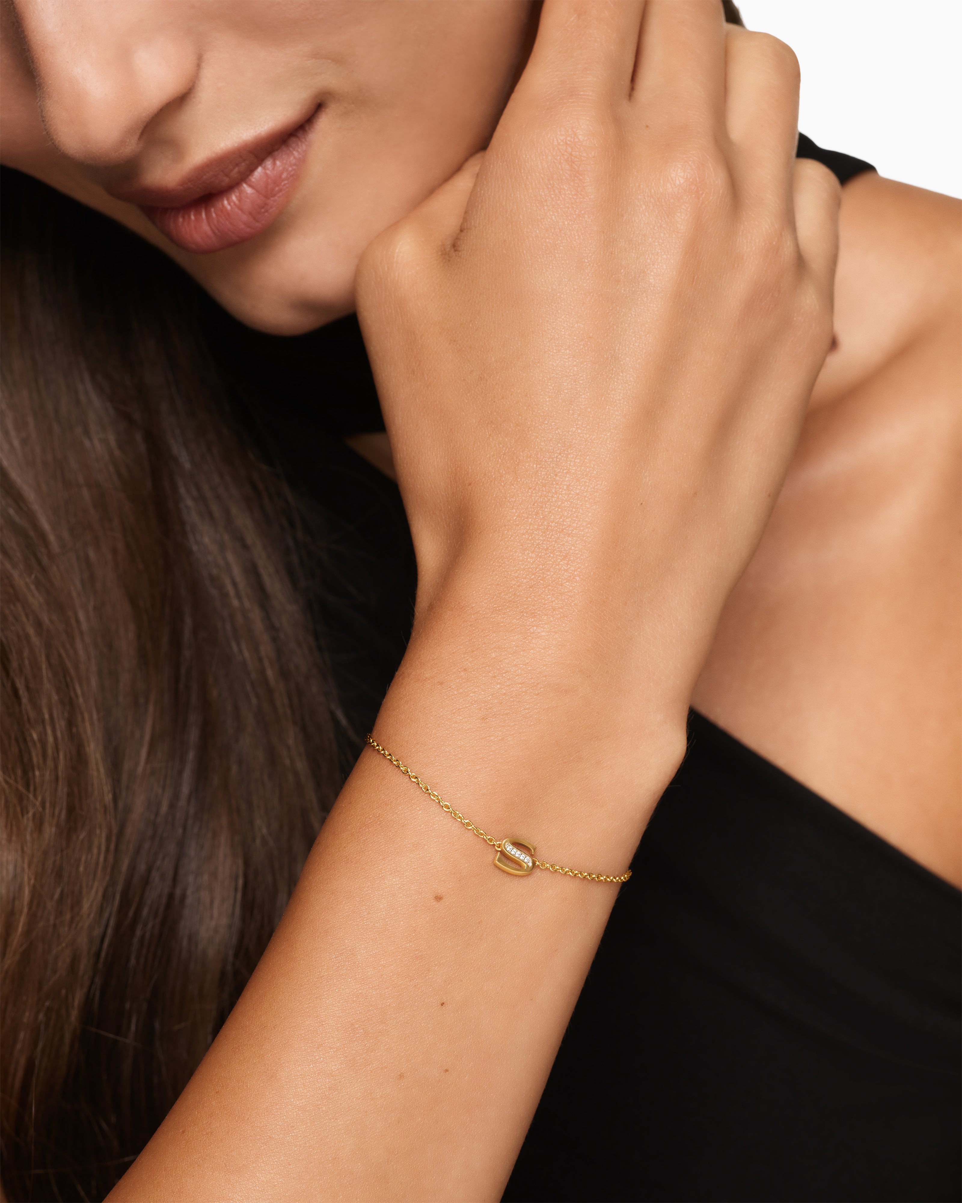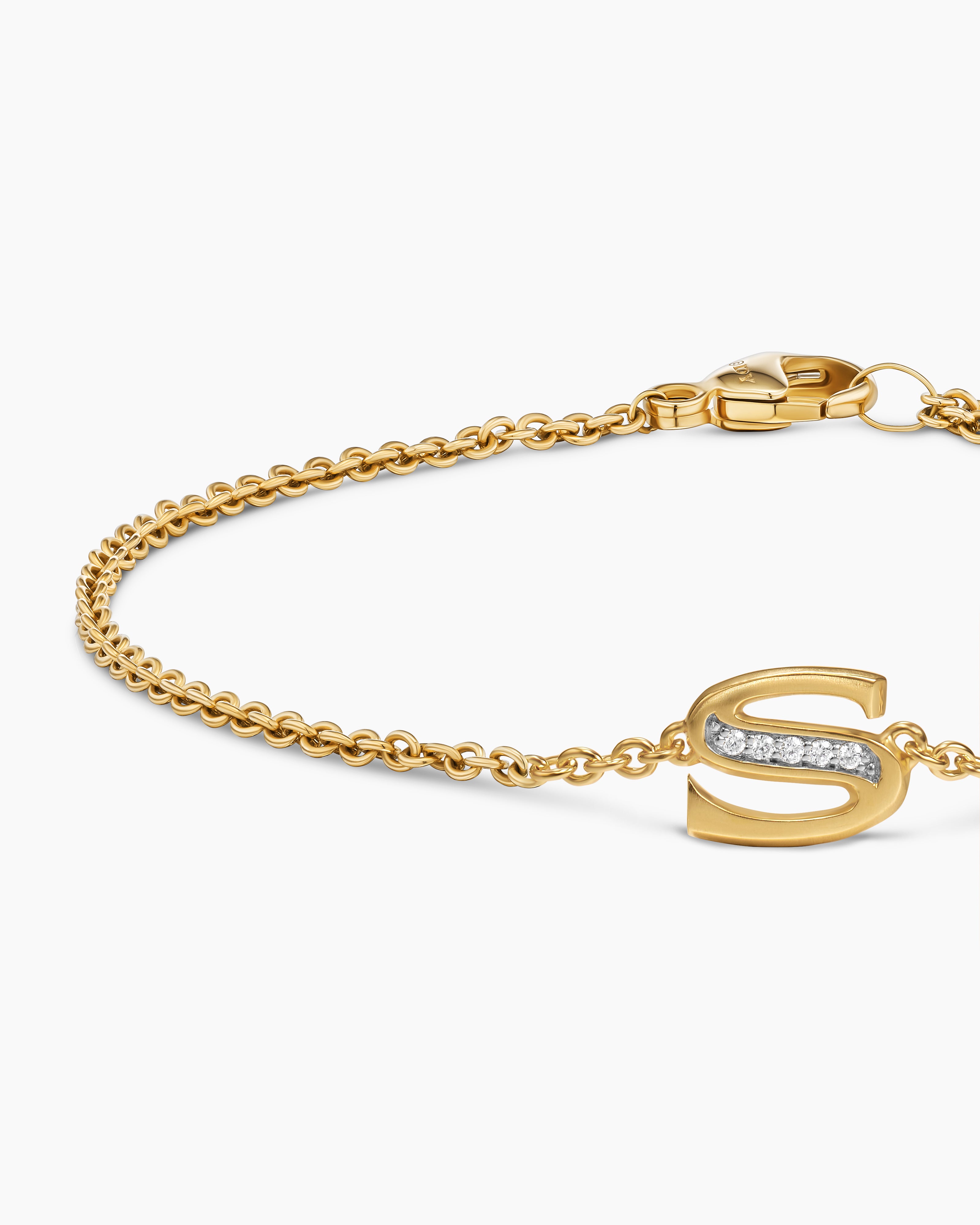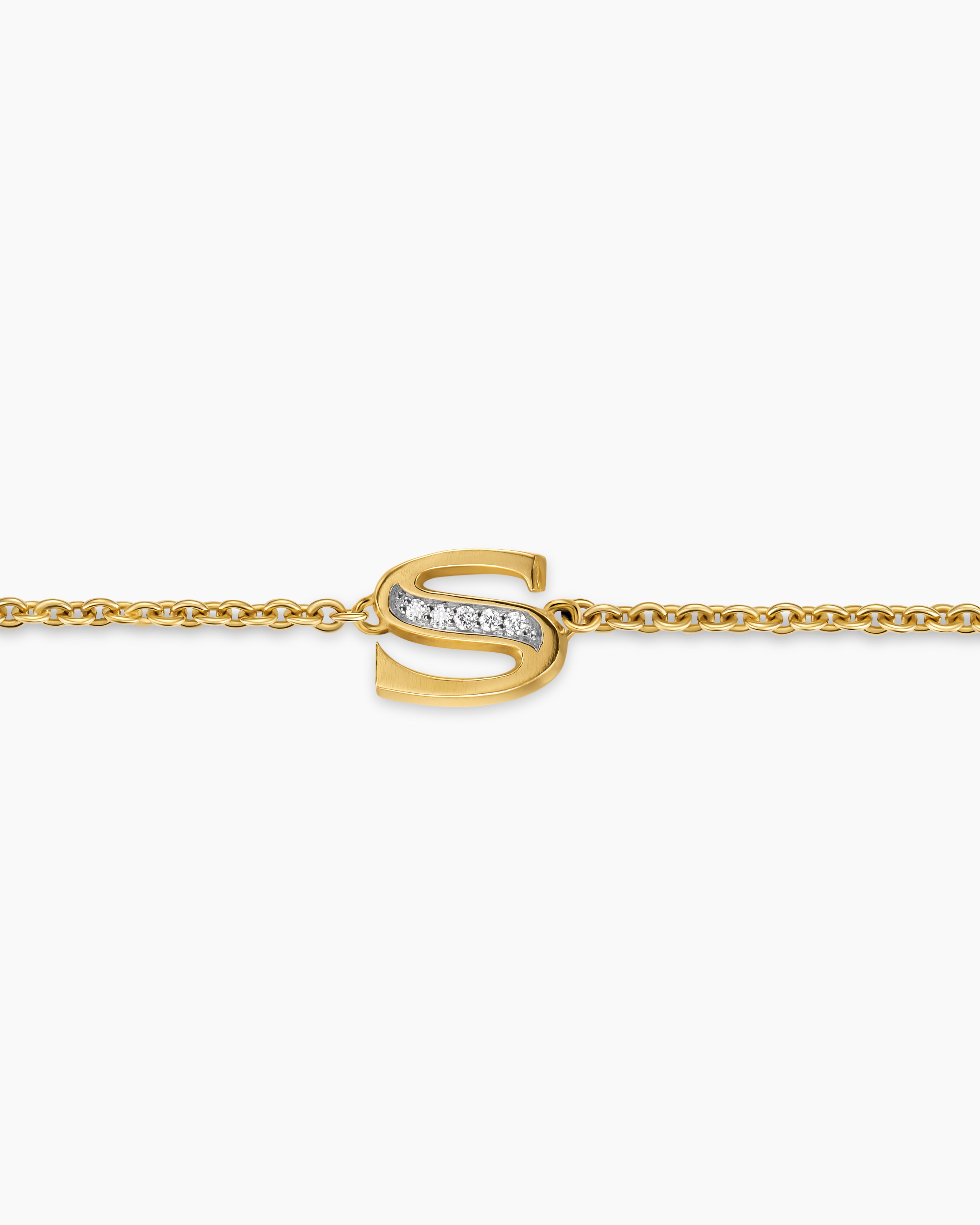 Petite Pavé Initial Chain Bracelet 18K Yellow Gold with Diamond S