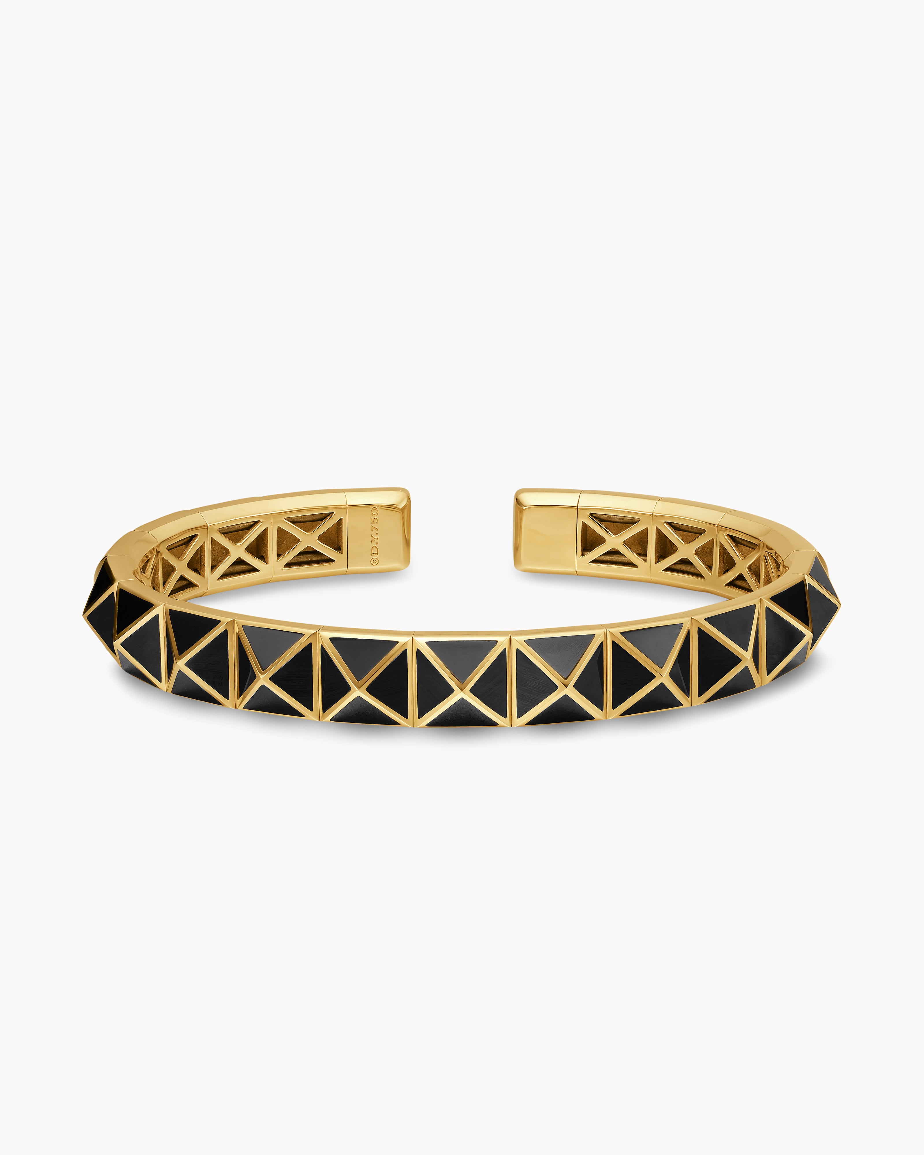 Pyramid Cuff Bracelet 18K Yellow Gold with Black Onyx, 8mm