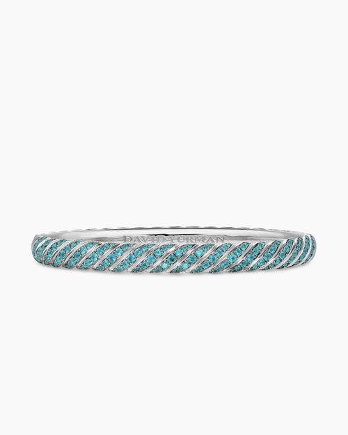 Sculpted Cable Bangle Bracelet 18K White Gold with Paraiba Tourmalines, 6.2mm