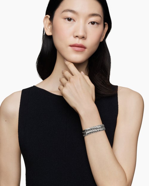 Sculpted Cable Double Wrap Bracelet Sterling Silver, 8.5mm
