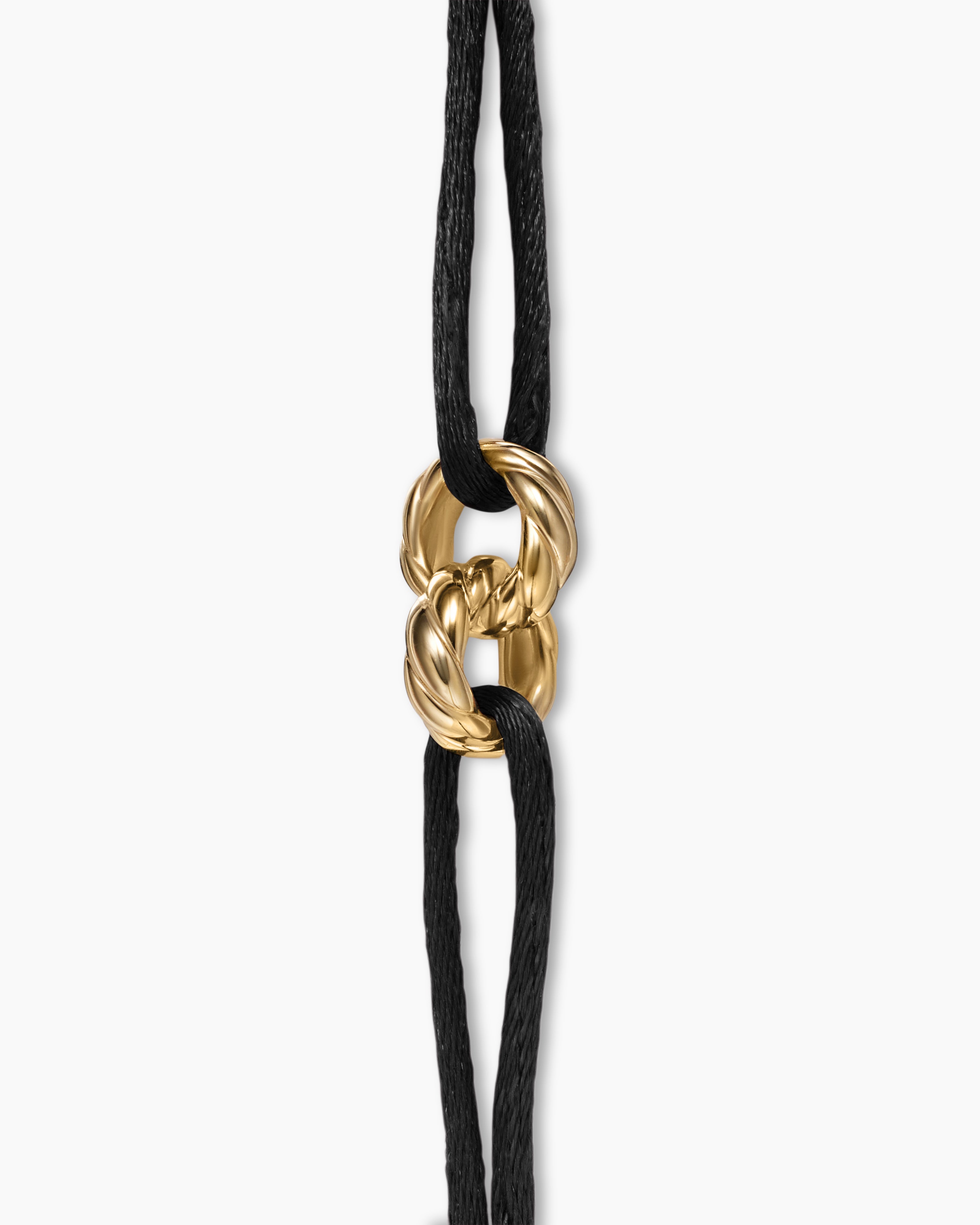 Sculpted Cable Linked Cord Bracelet Black Nylon with 18K Yellow Gold, 8.7mm