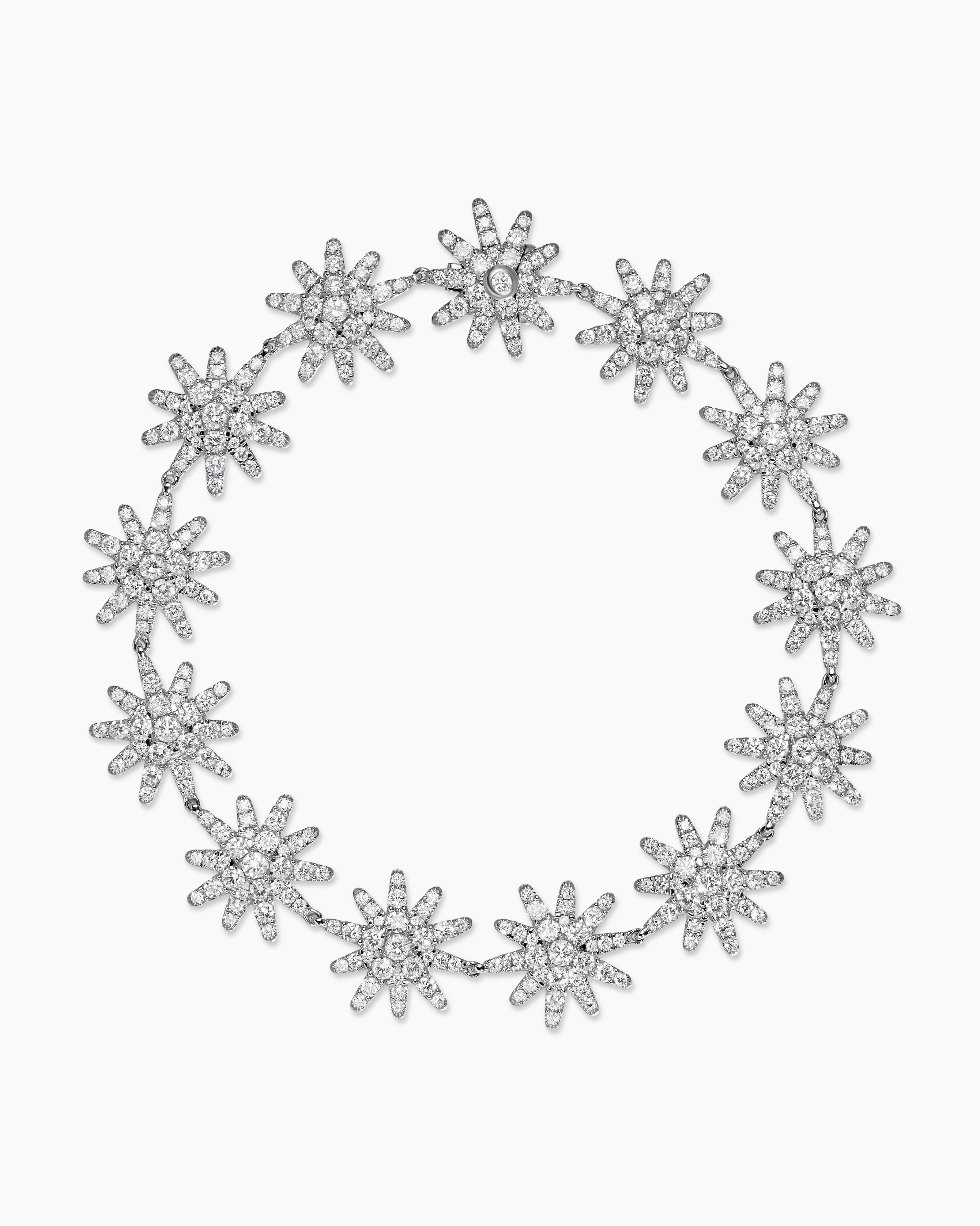 Starburst Pavé Tennis Bracelet 18K White Gold with Diamonds, 12.3mm