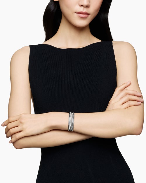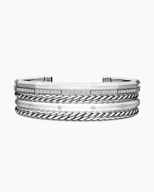 Stax Five Row Cuff Bracelet Sterling Silver with Diamonds, 16mm