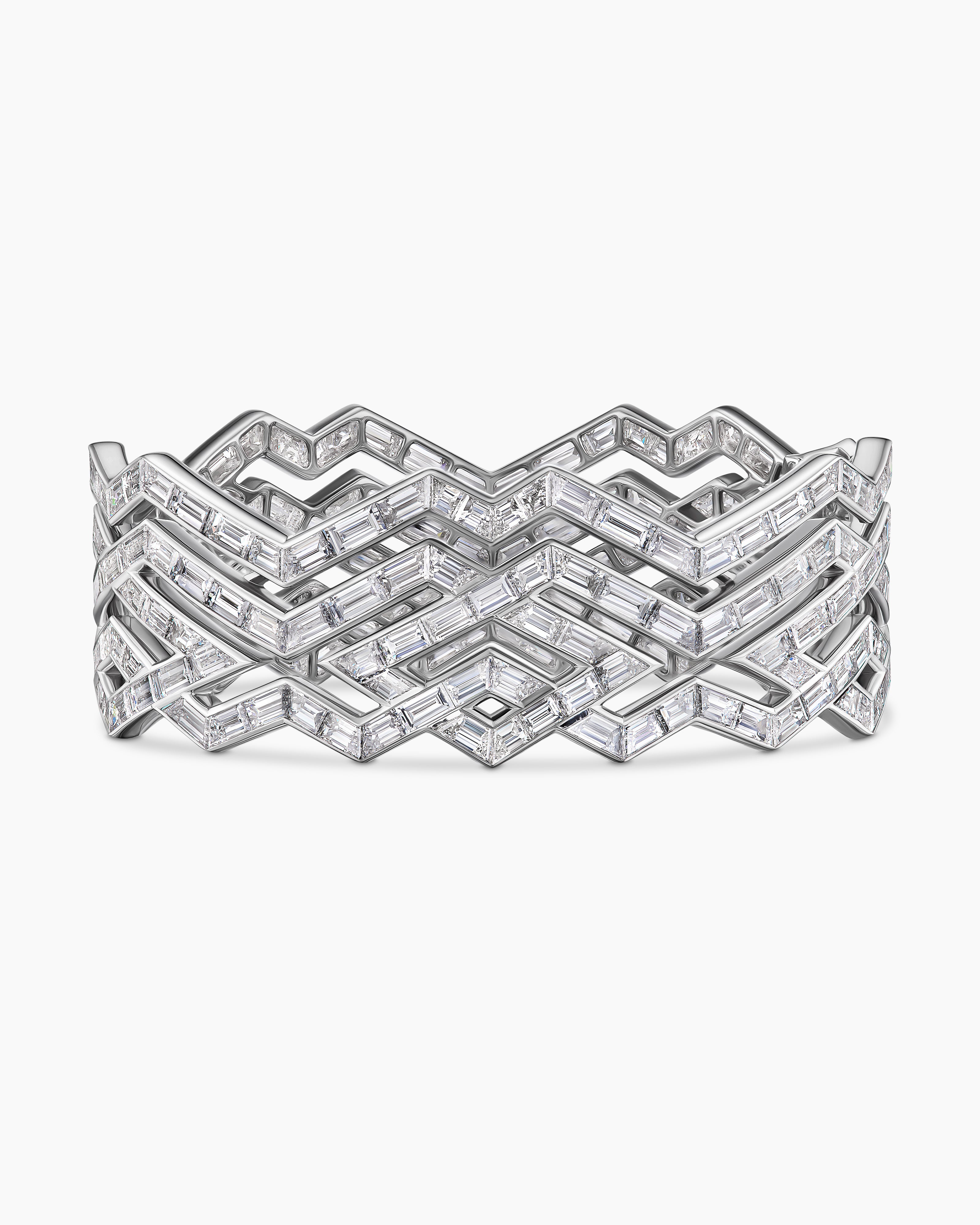 Stax Zig Zag Multi Row Bangle Bracelet White Gold with Diamonds