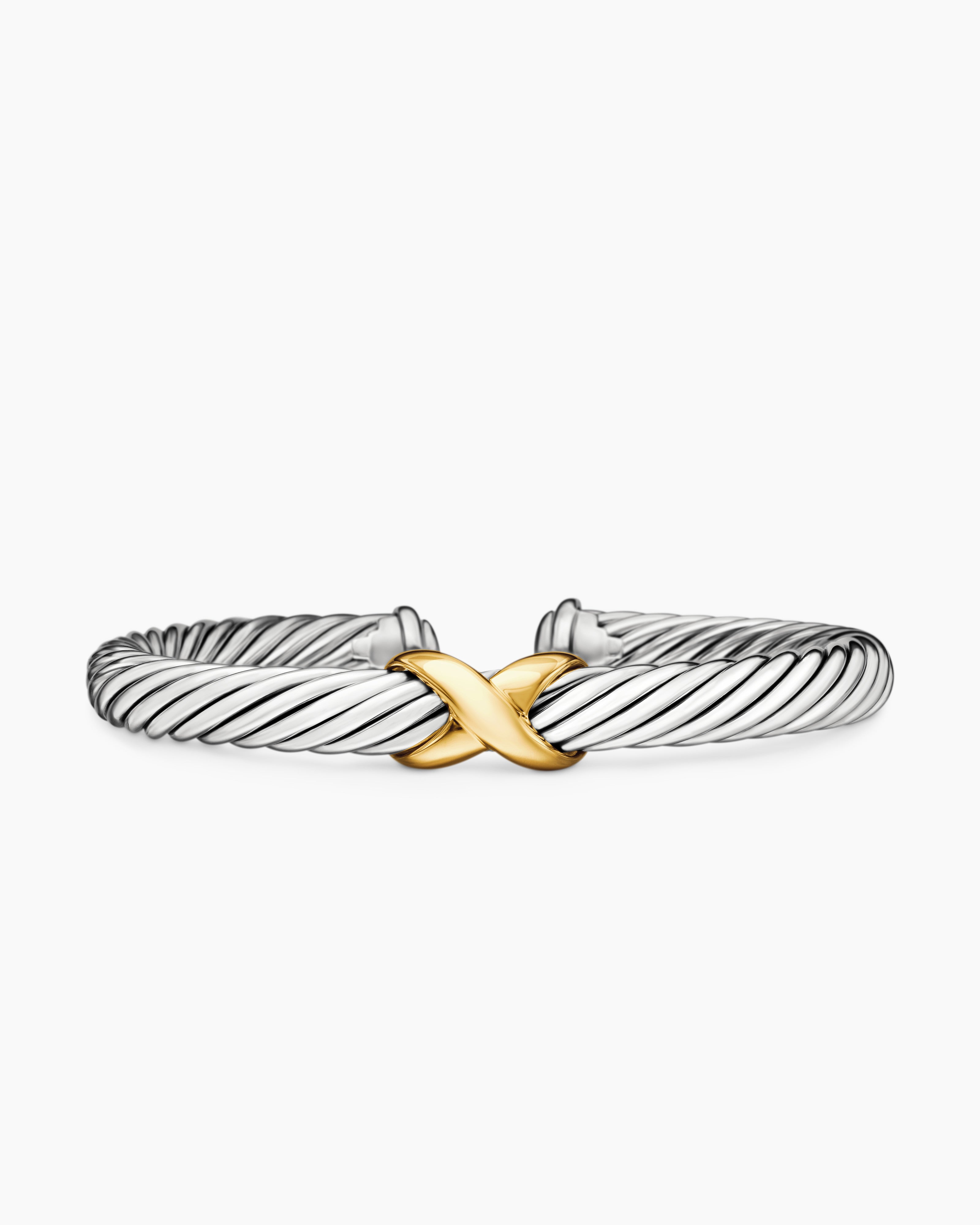 X Classic Cable Station Bracelet Sterling Silver with 14K Yellow Gold, 7mm
