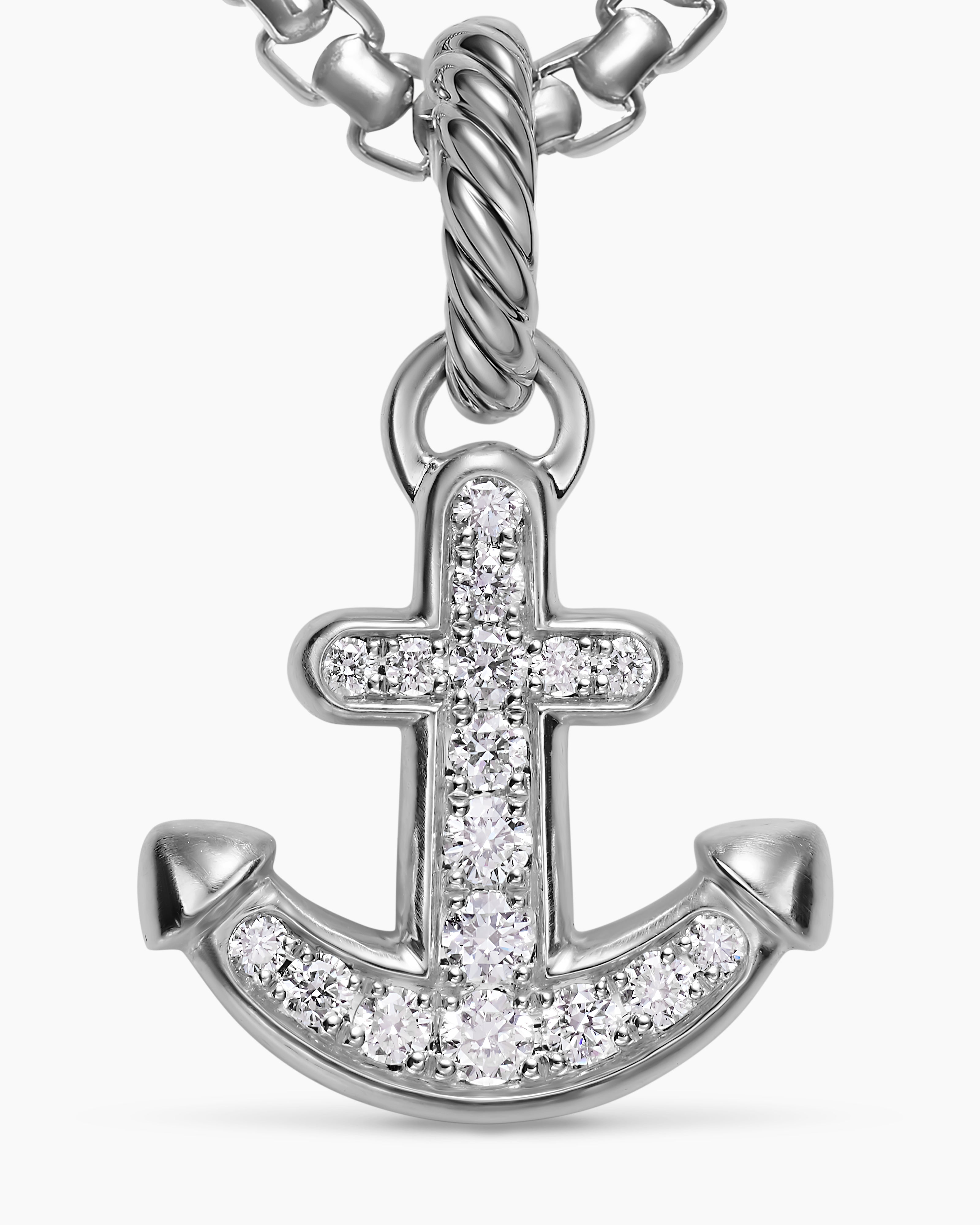 Anchor Amulet Sterling Silver with Diamonds, 14.2mm