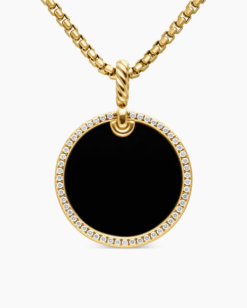 DY Elements® Disc Pendant 18K Yellow Gold with Black Onyx and Diamond Rim, 24mm