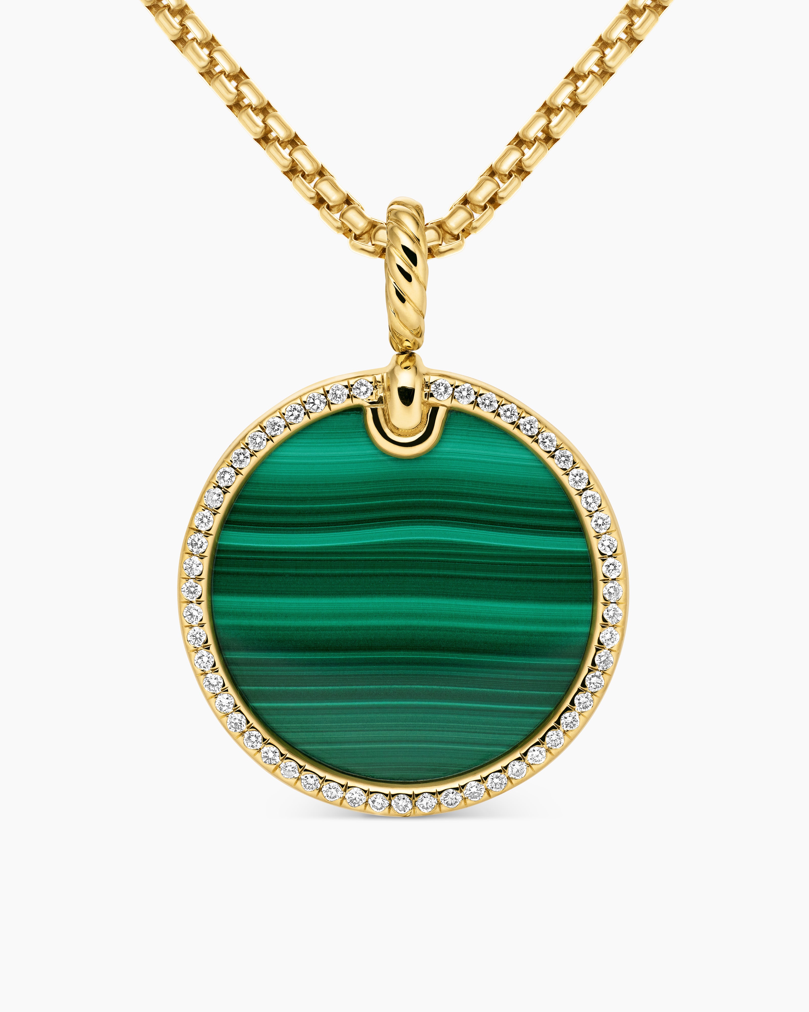 DY Elements® Disc Pendant 18K Yellow Gold with Malachite and Diamond Rim, 24mm