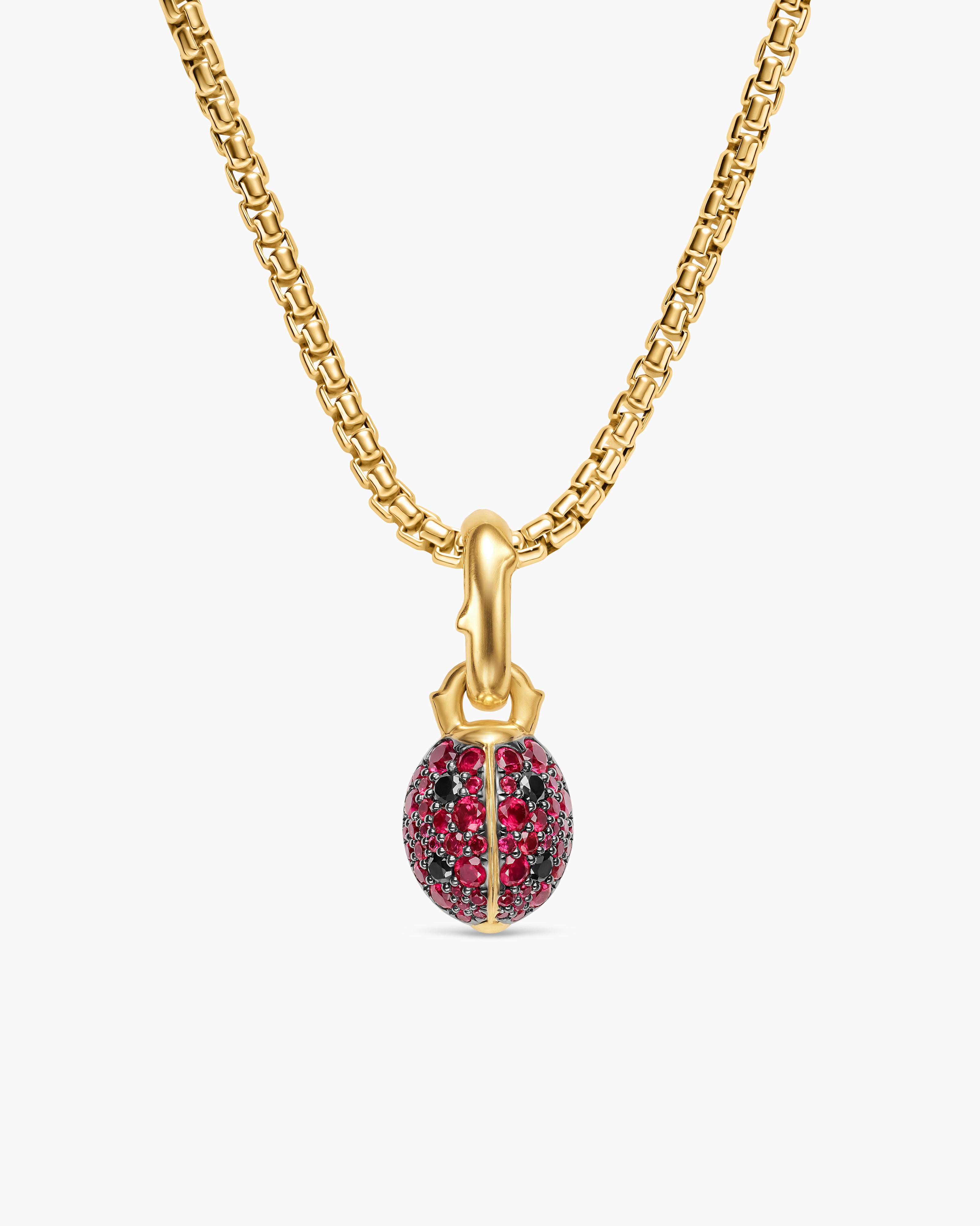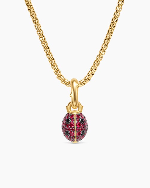 Ladybug Amulet 18K Yellow Gold with Rubies and Black Diamonds, 12.7mm