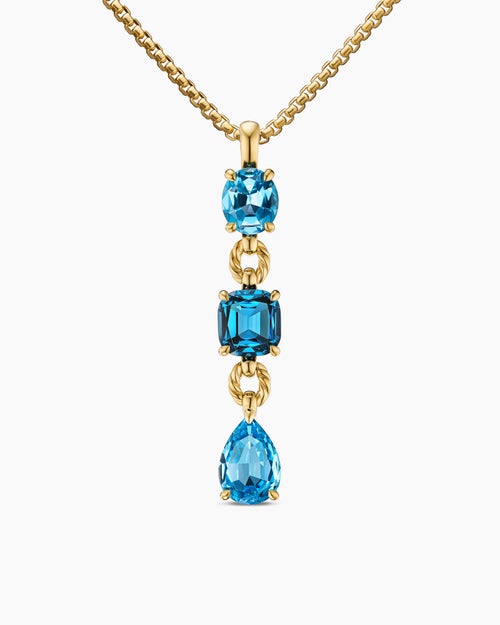 Marbella Y Pendant 18K Yellow Gold with Blue Topaz and Hampton Blue Topaz, 57.8mm