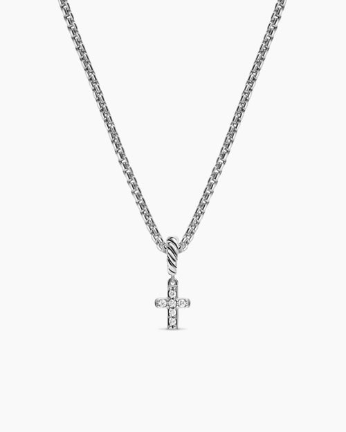 Micro Pavé Cross Amulet Sterling Silver with Diamonds, 8mm