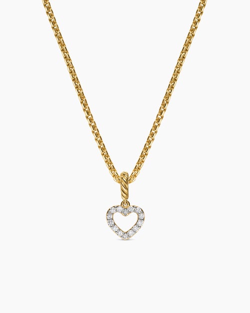 Micro Pavé Open Heart Amulet 18K Yellow Gold with Diamonds, 6.8mm