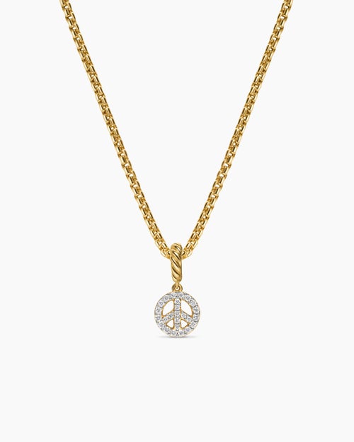 Micro Pavé Peace Sign Amulet 18K Yellow Gold with Diamonds, 7.6mm