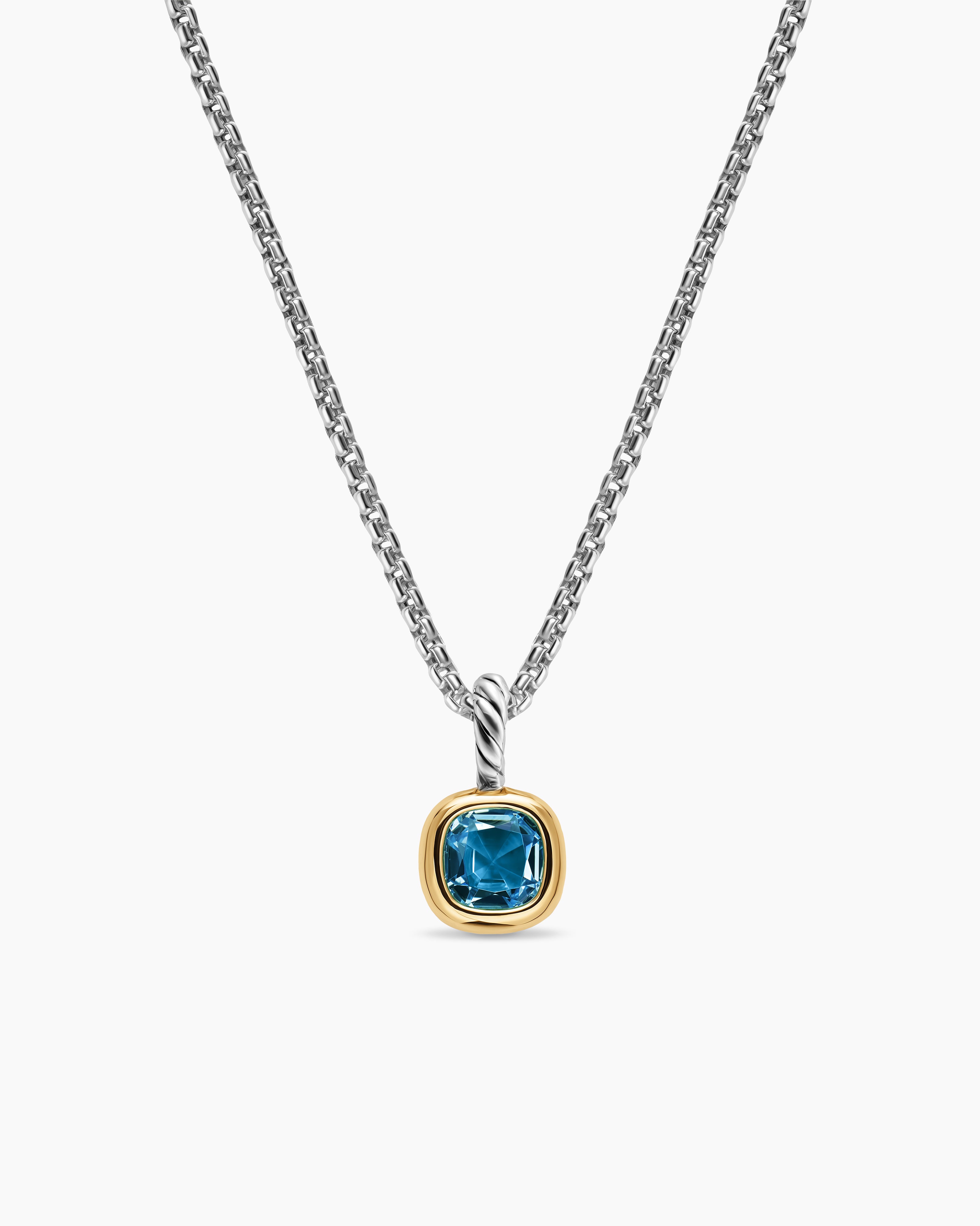 Mini Cushion Cut Amulet Sterling Silver with 14K Yellow Gold and Hampton Blue Topaz, 5.5mm