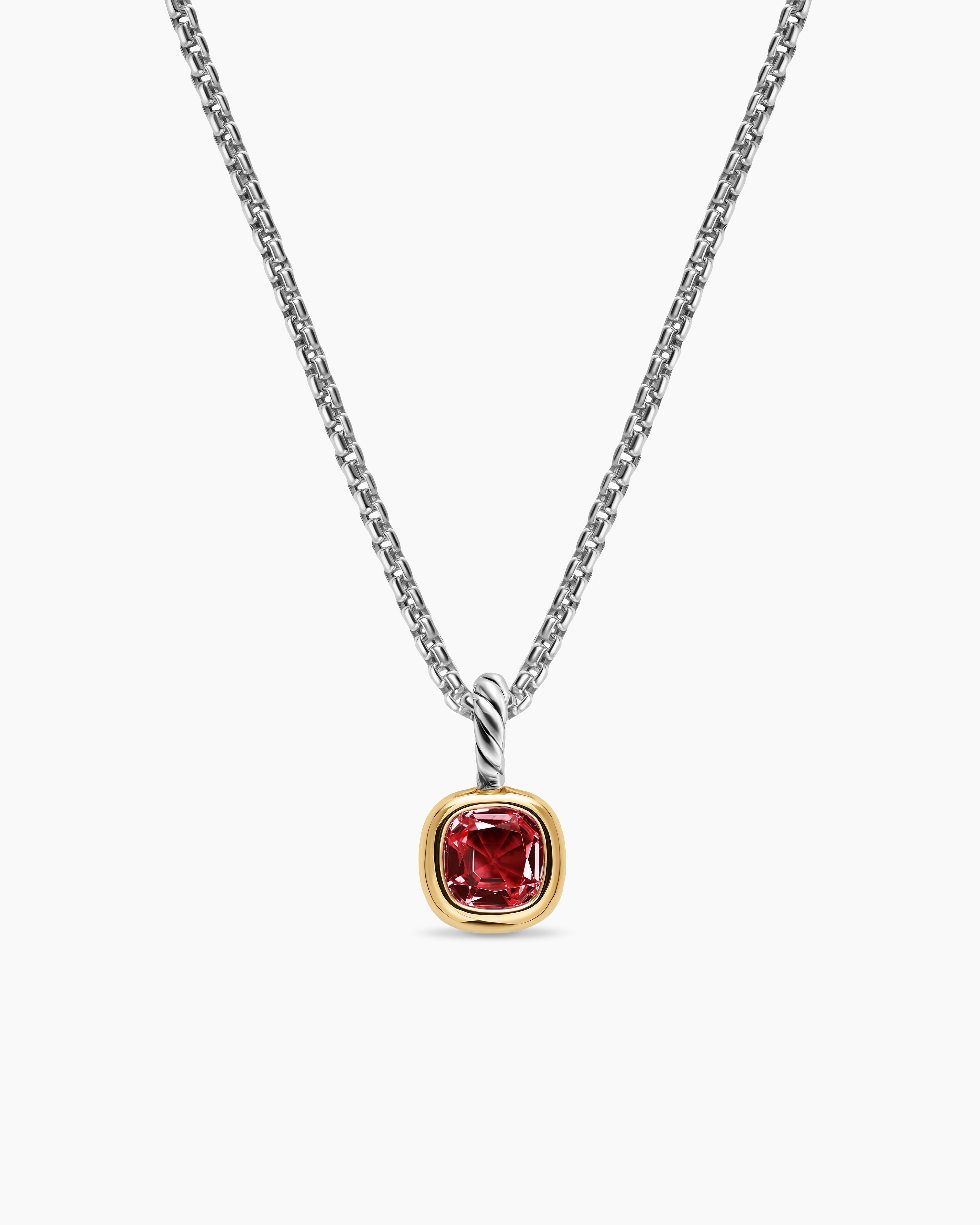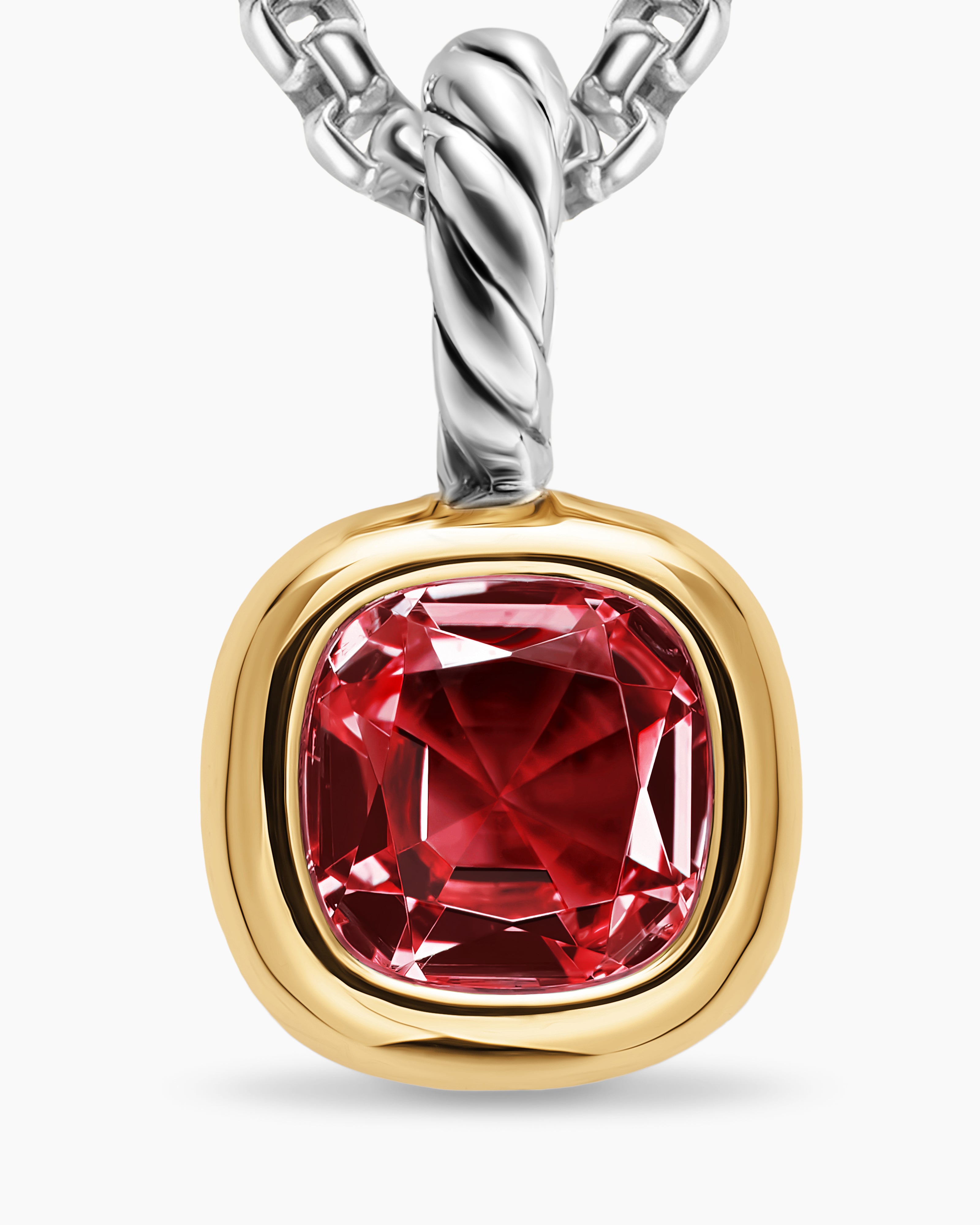 Mini Cushion Cut Amulet Sterling Silver with 14K Yellow Gold and Rhodolite Garnet, 5.5mm