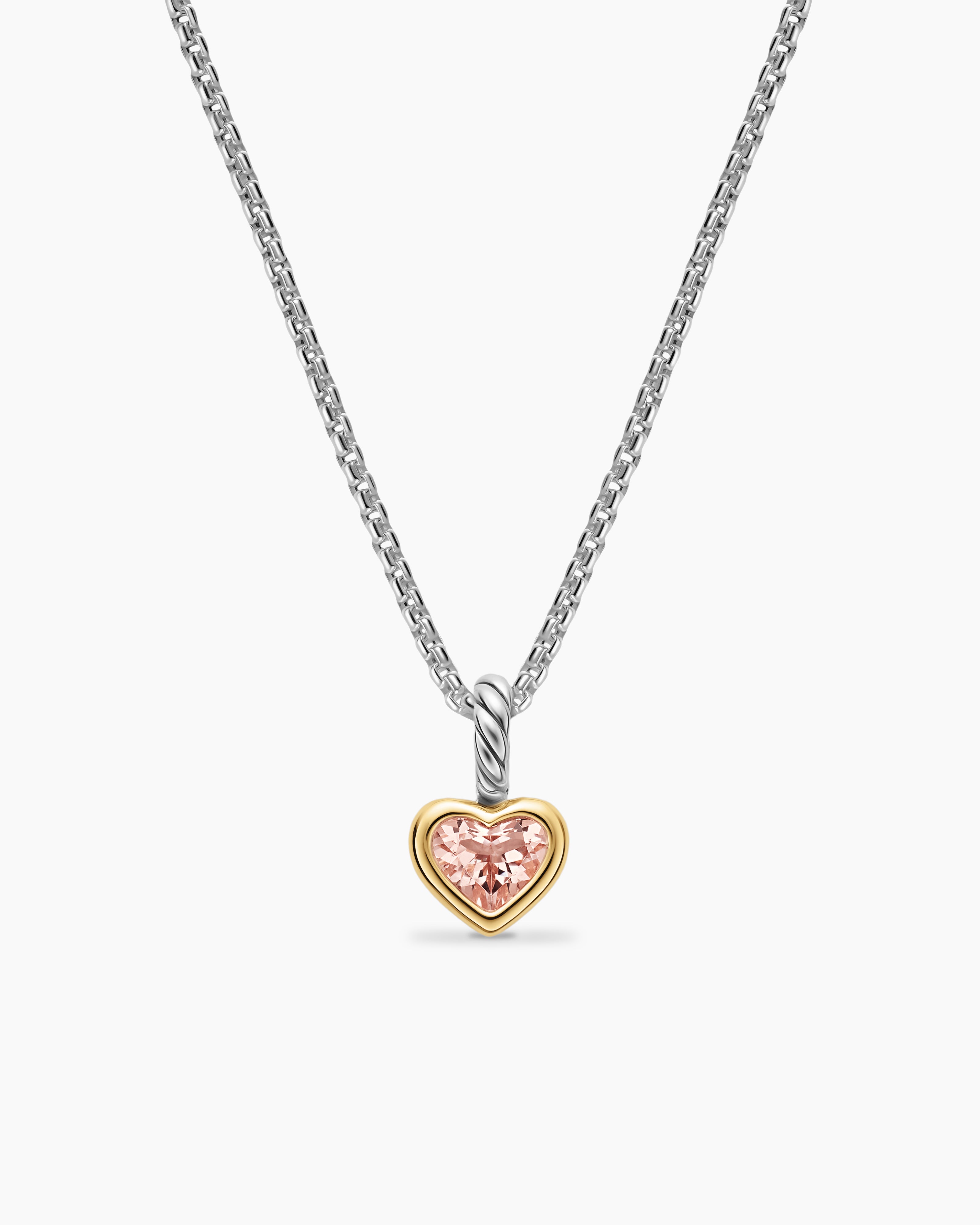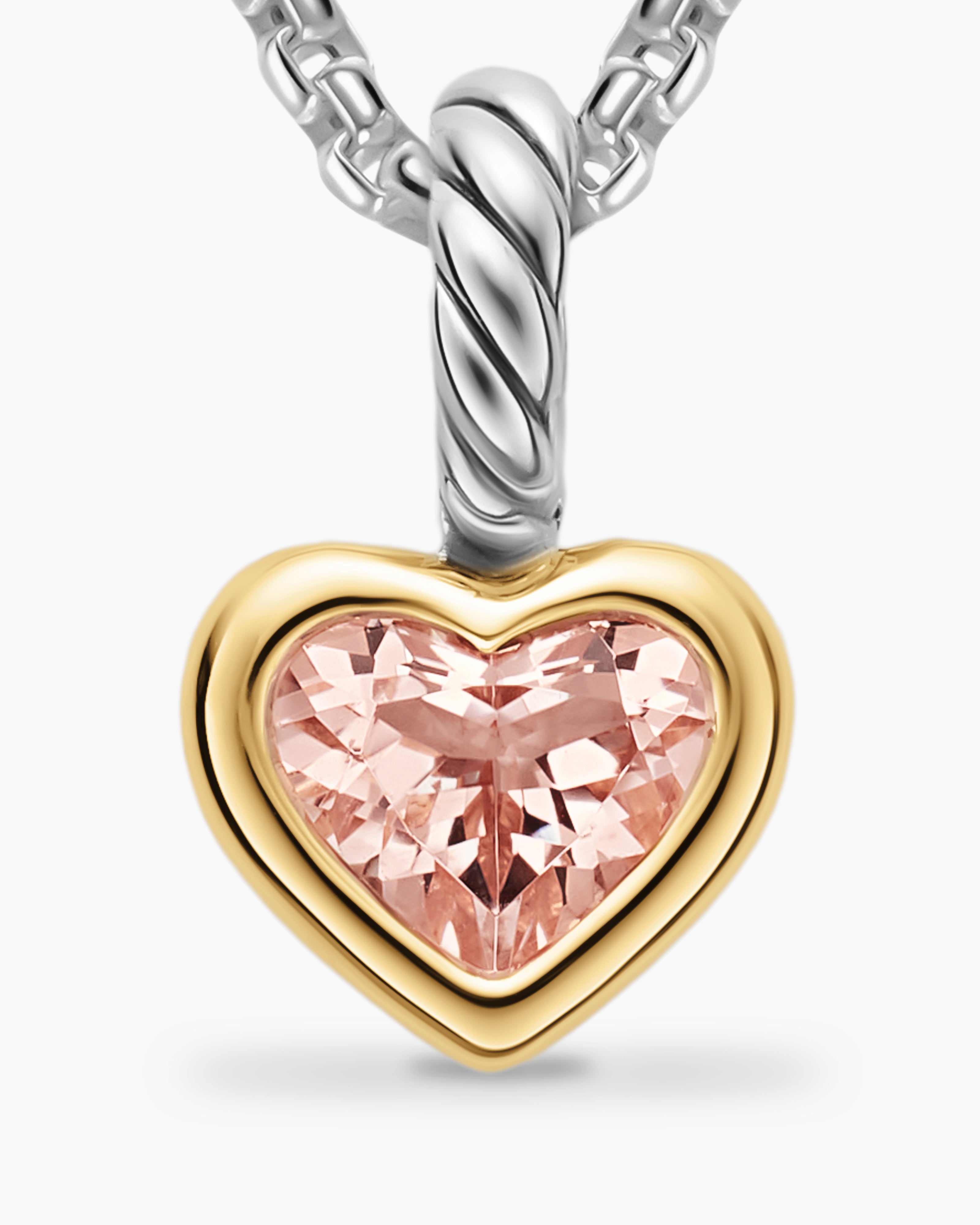 Mini Heart Amulet Sterling Silver with 14K Yellow Gold and Morganite, 7.2mm