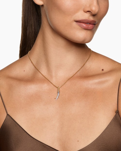 Petite Tusk Amulet 18K Yellow Gold with Botswana Agate, 20.5mm