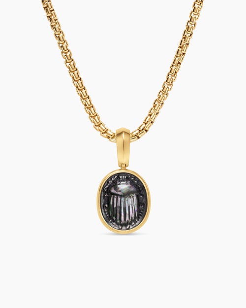 Petrvs® Petite Scarab Amulet 18K Yellow Gold with Black Mother of Pearl, 12.1mm