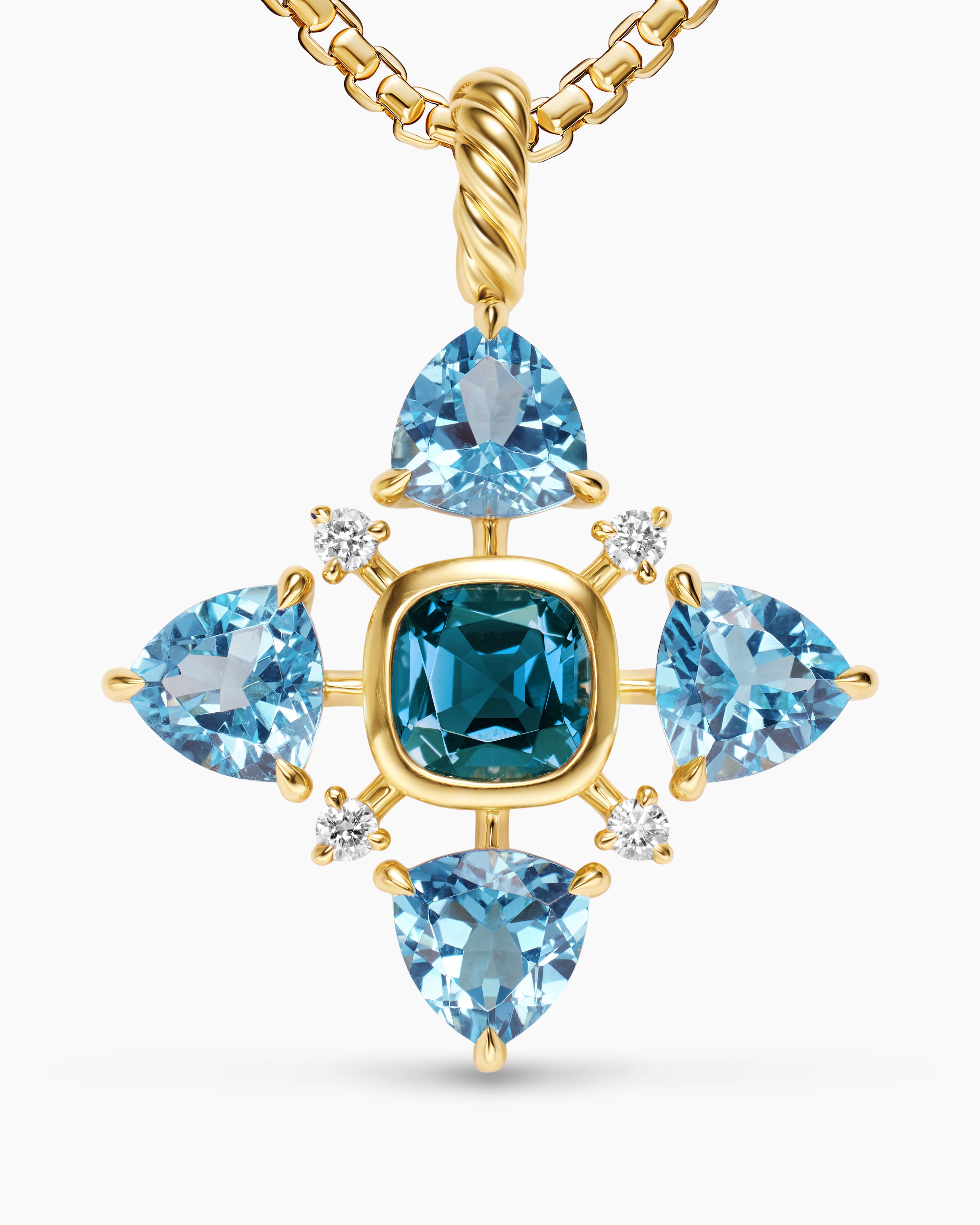 Renaissance® Quad Pendant in 18K Yellow Gold with Blue Topaz, Hampton Blue Topaz and Diamonds, 36mm
