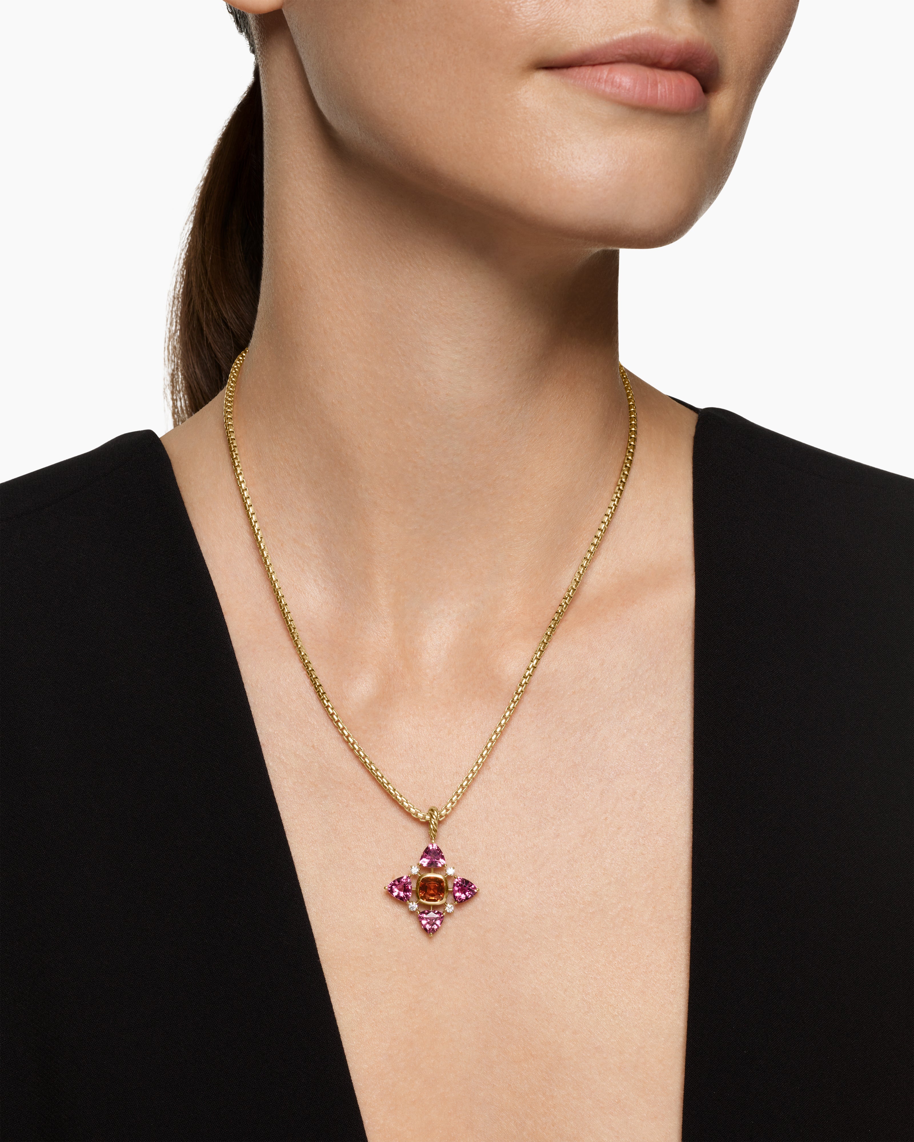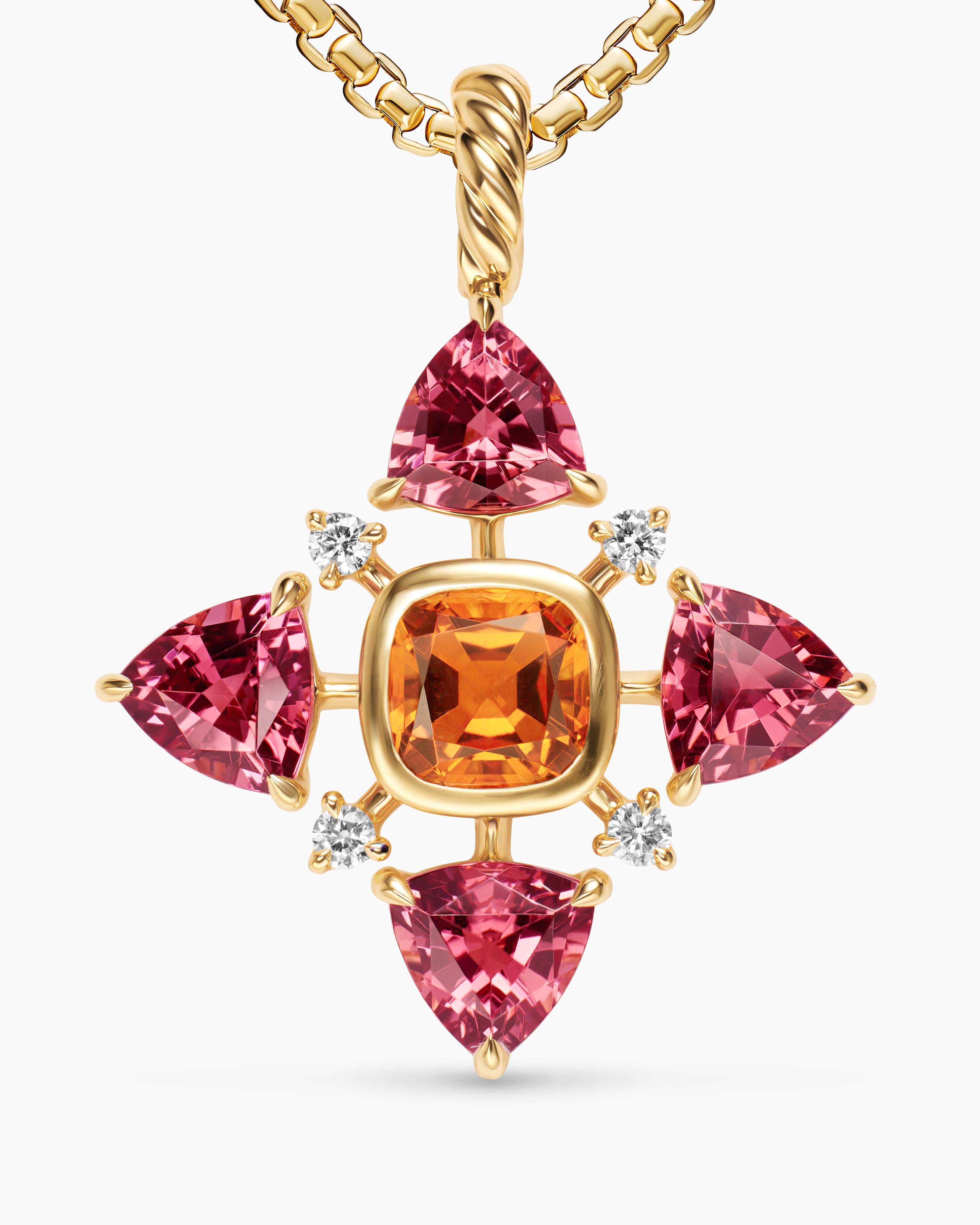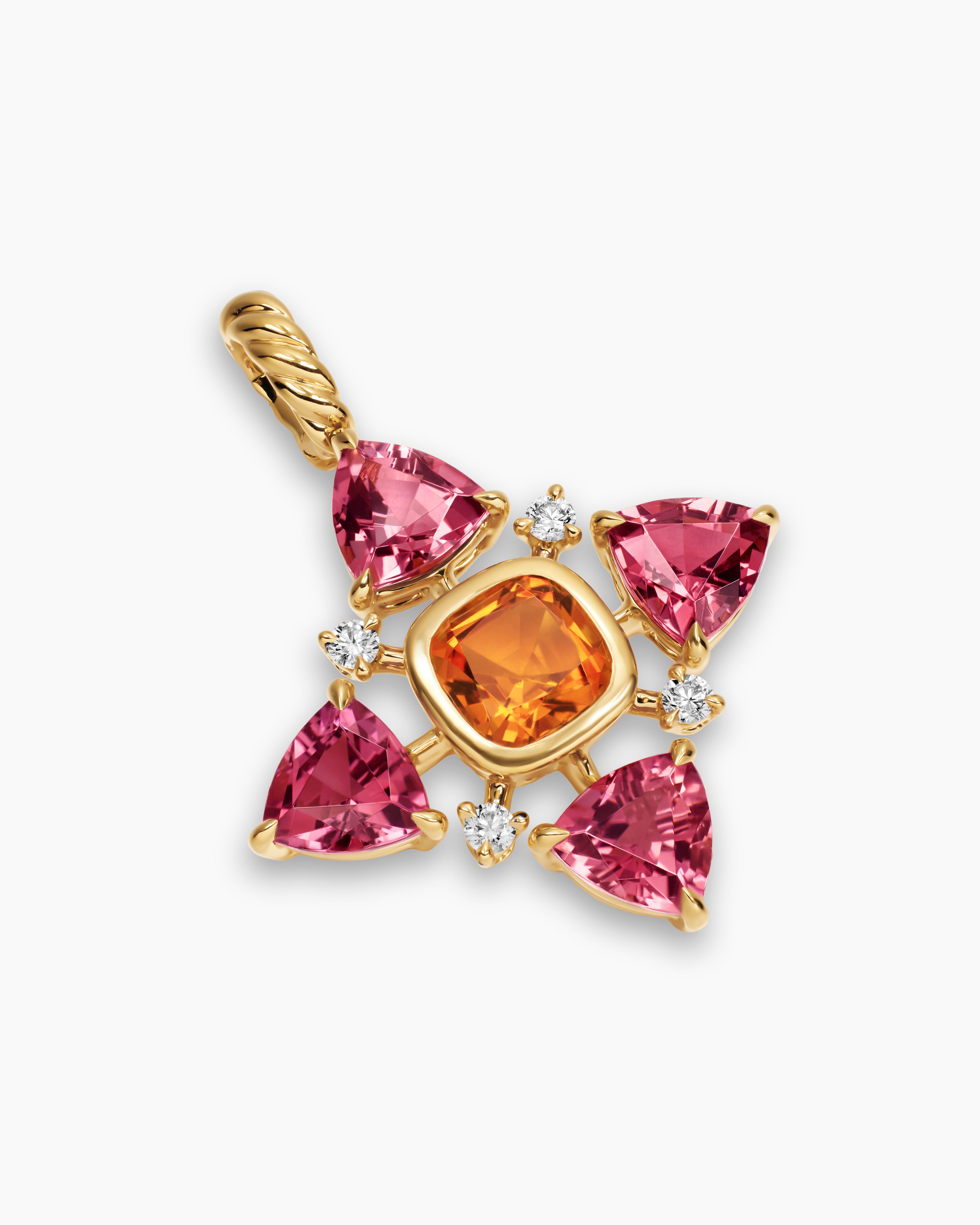 Renaissance® Quad Pendant 18K Yellow Gold with Madeira Citrine, Pink Tourmaline and Diamonds, 36mm