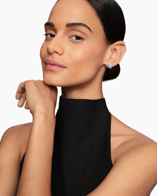 Albion® Stud Earrings Sterling Silver with Pavé Diamonds, 7mm