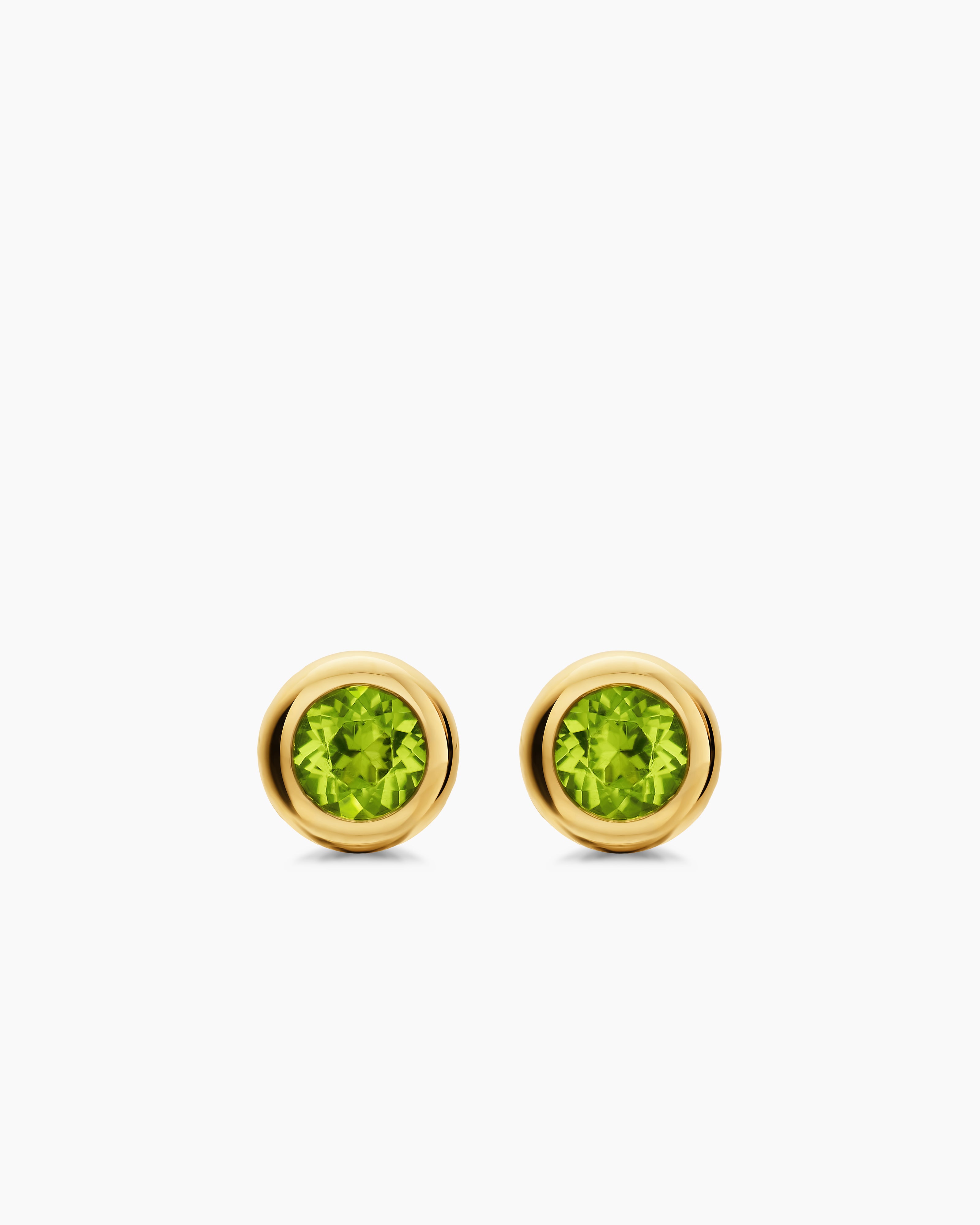 Bezel Set Stud Earrings 18K Yellow Gold with Peridot, 6.6mm