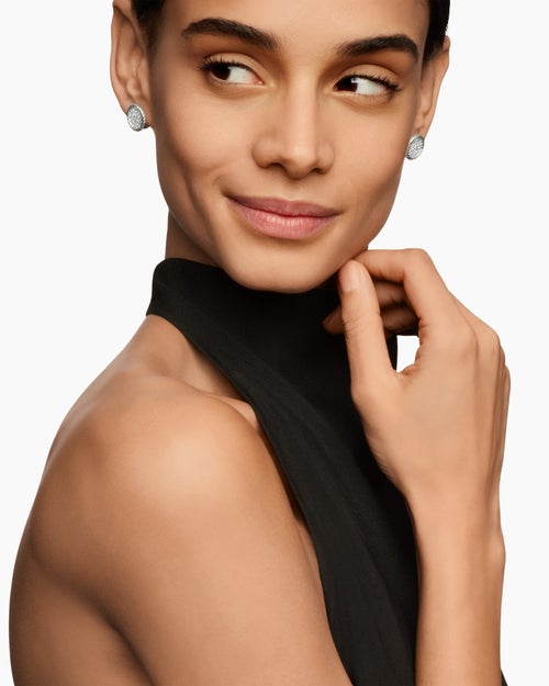 DY Elements® Button Stud Earrings Sterling Silver with Diamonds, 13.6mm