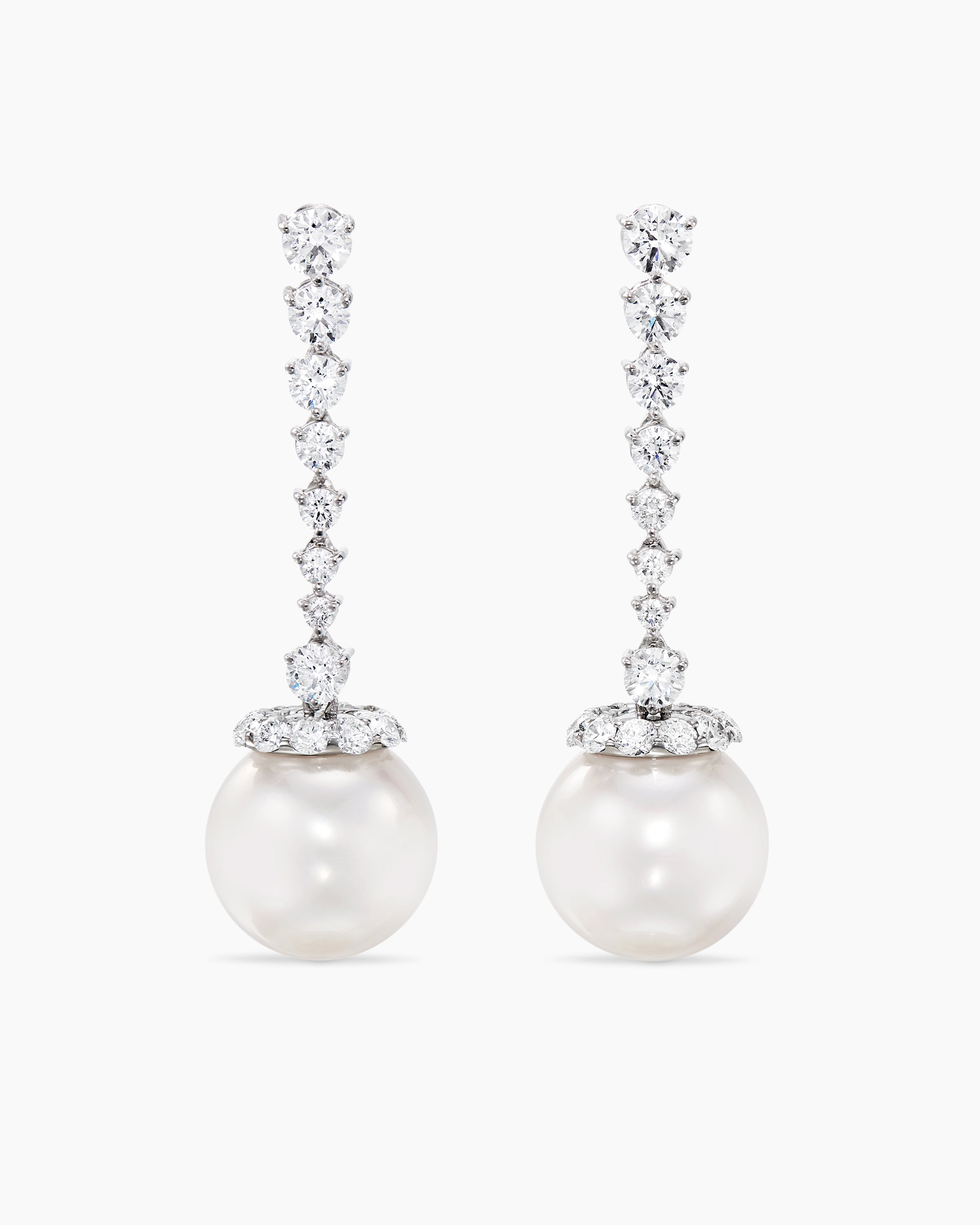 DY Lumina Pearl Diamond Drop Earrings White Gold with Diamonds
