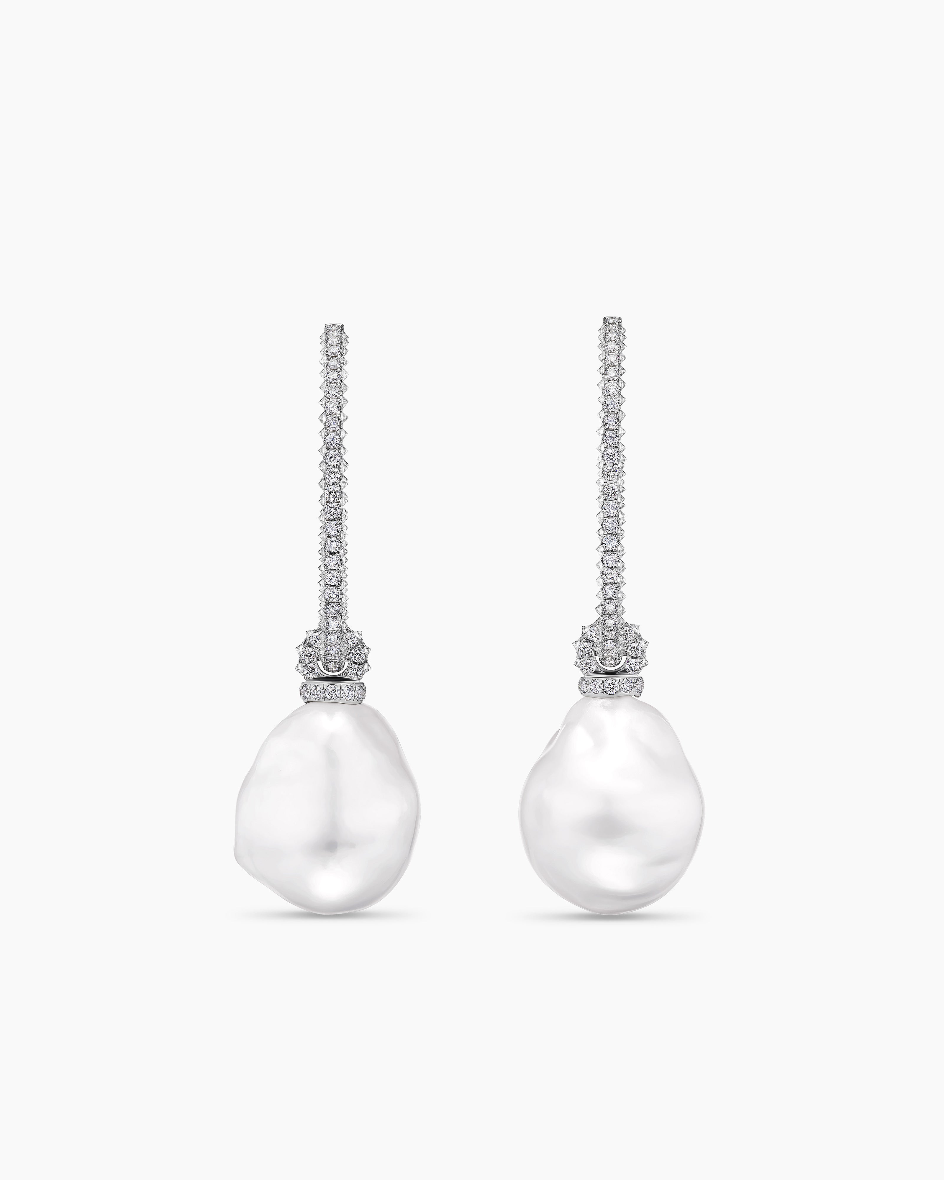 DY Lumina Pearl Reverse Set Drop Earrings White Gold with Diamonds