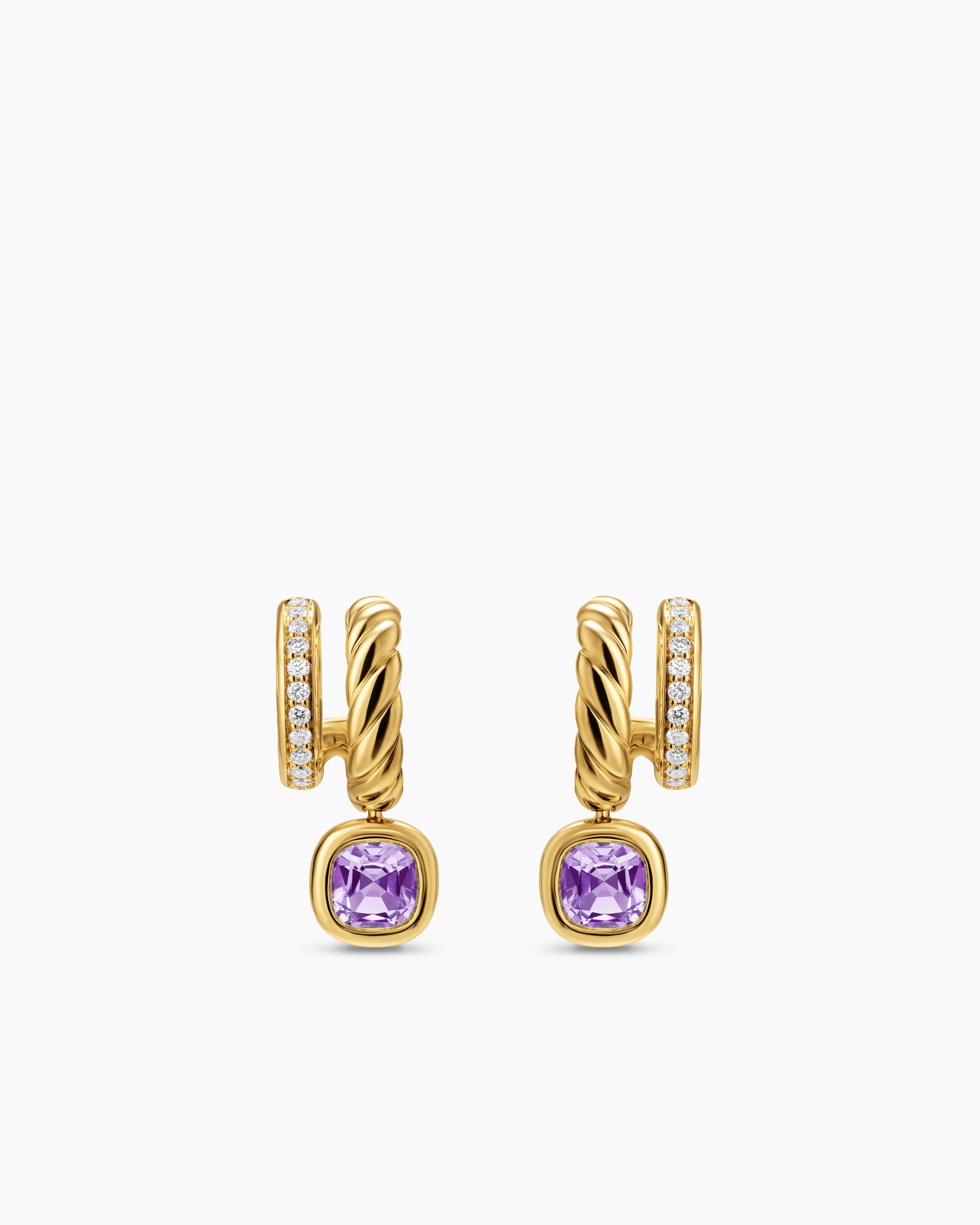 DY Mercer® Color Two Row Drop Earrings 18K Yellow Gold with Amethyst and Diamonds, 19.5mm