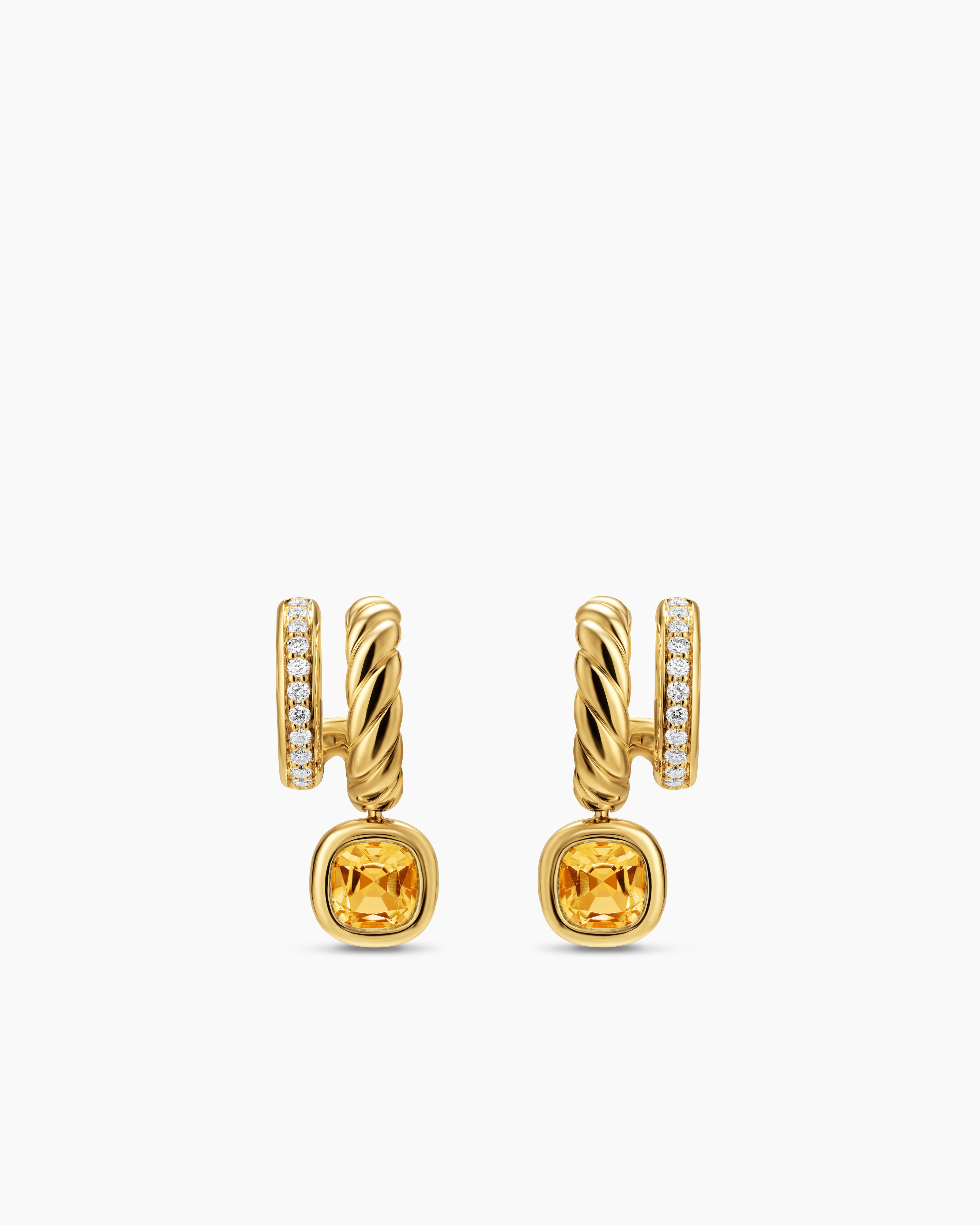 DY Mercer® Color Two Row Drop Earrings 18K Yellow Gold with Citrine and Diamonds, 19.5mm