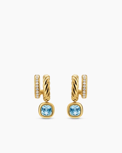 DY Mercer® Color Two Row Drop Earrings 18K Yellow Gold with Sky Blue Topaz and Diamonds, 19.5mm