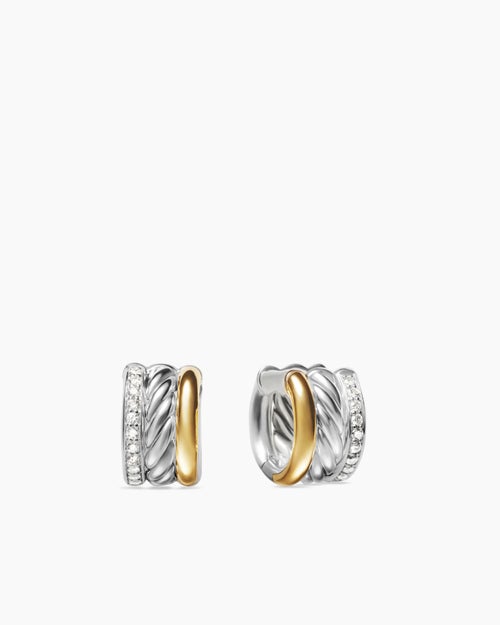 DY Mercer® Huggie Hoop Earrings Sterling Silver with 18K Yellow Gold and Diamonds, 14mm