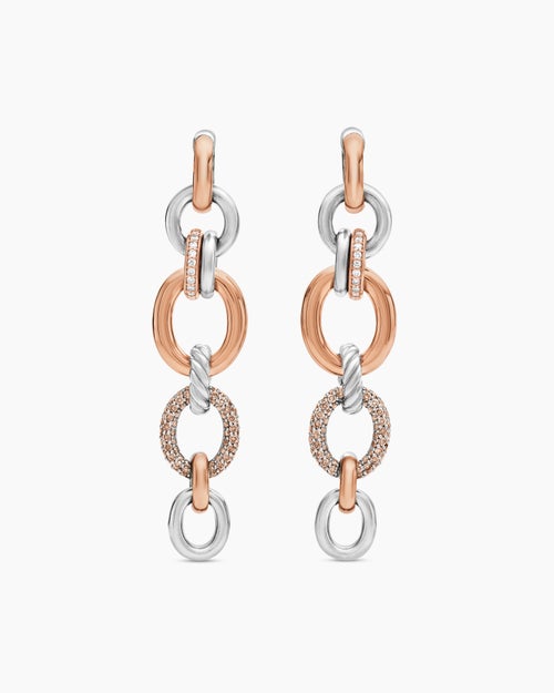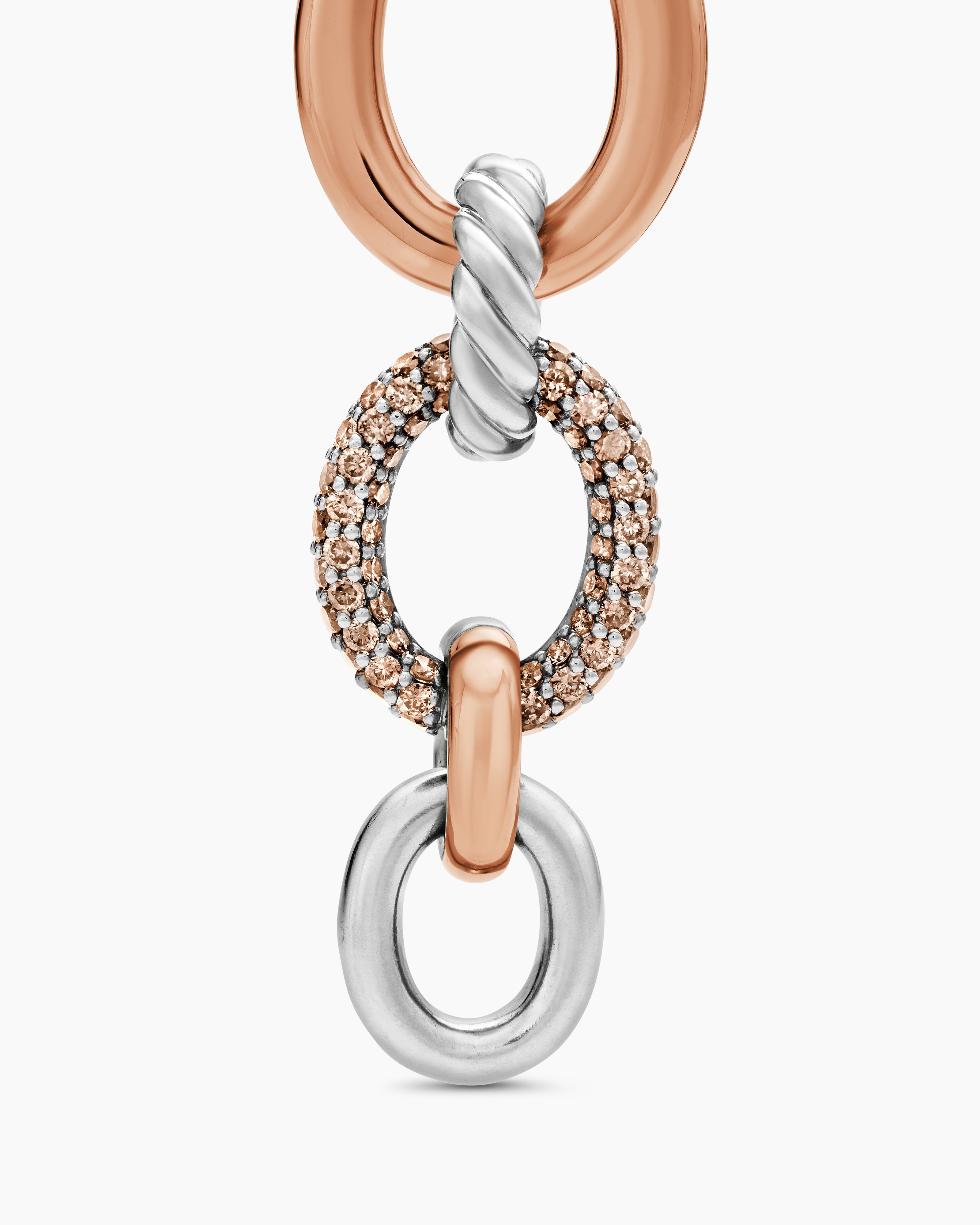 DY Mercer® Melange Linked Drop Earrings Sterling Silver with 18K Rose Gold and Diamonds, 68mm