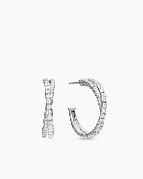 Pavé Crossover Hoop Earrings 18K White Gold with Diamonds, 24mm