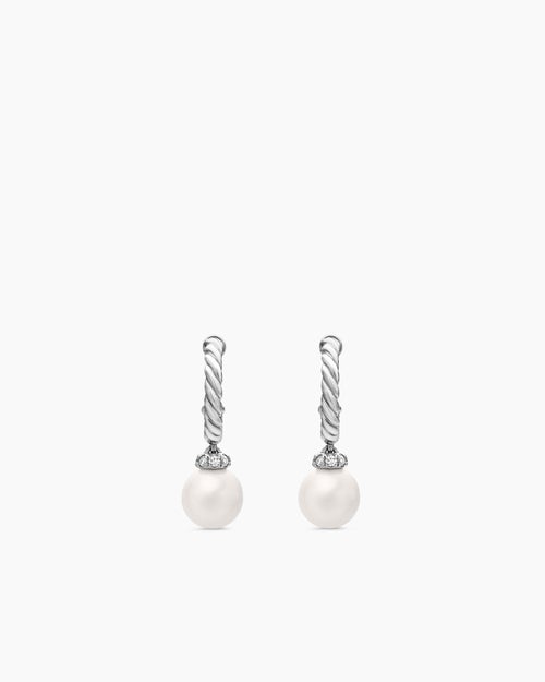 Pearl and Pavé Solari Drop Earrings Sterling Silver with Pearls and Diamonds, 18.4mm
