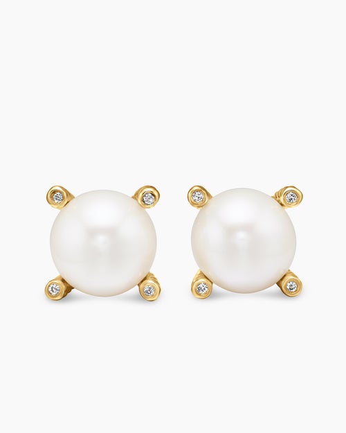 Pearl Stud Earrings 18K Yellow Gold with Pearls and Diamonds, 14mm
