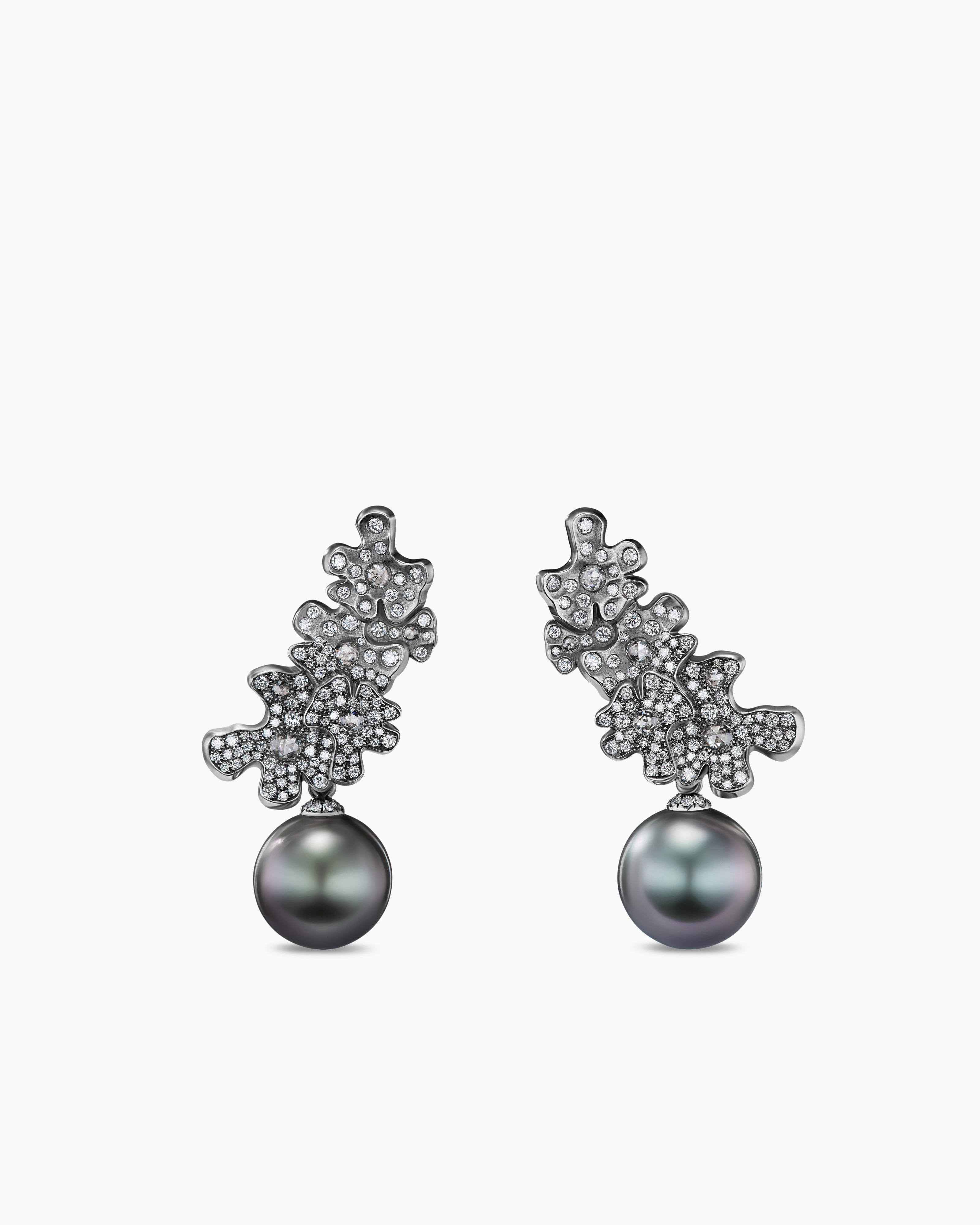 Petals and Pearl Climber Earrings White Gold with Rhodiated Black and Diamonds