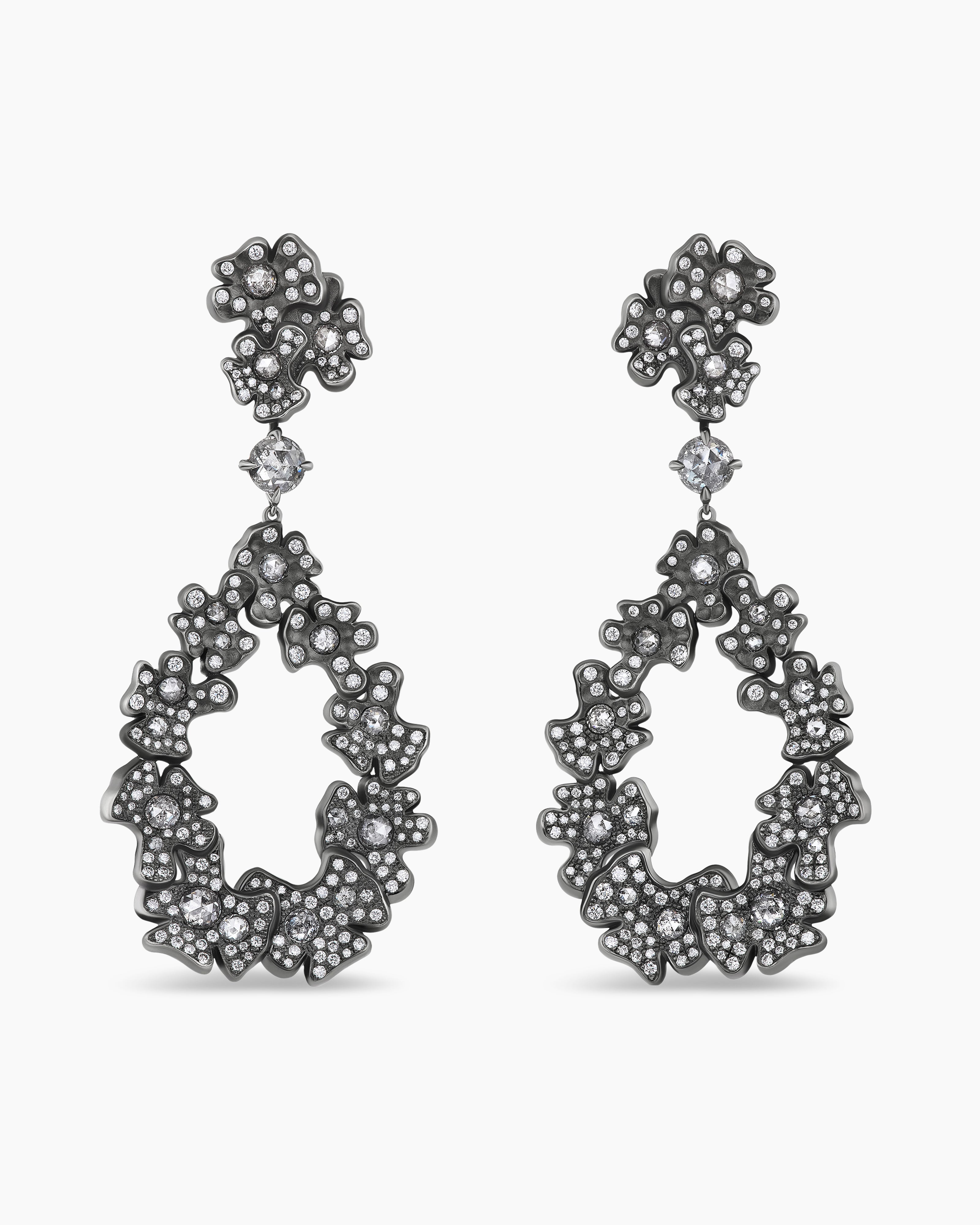 Petals Drop Earrings White Gold with Rhodiated Black and Diamonds
