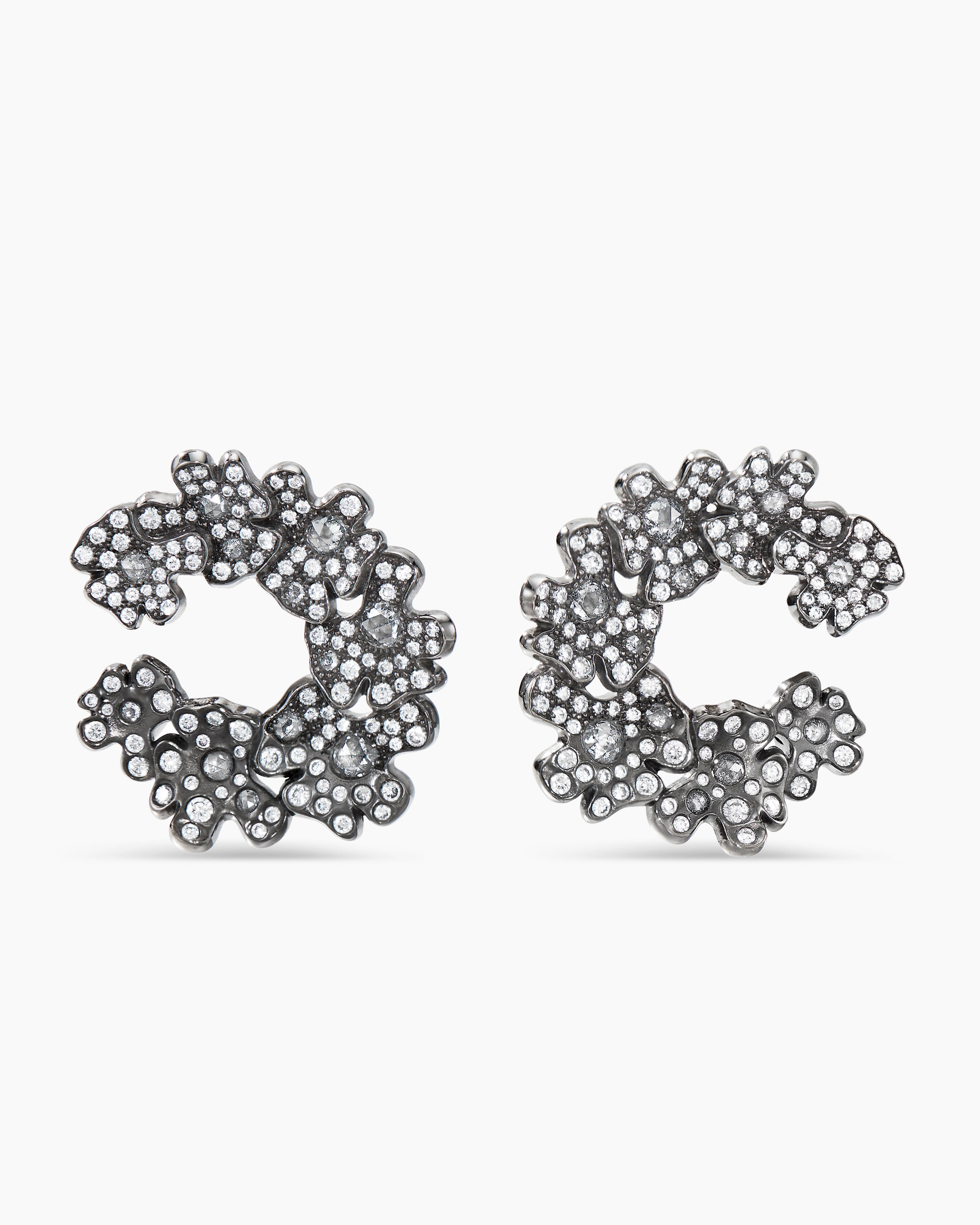 Petals Hoop Earrings White Gold with Rhodiated Black and Diamonds