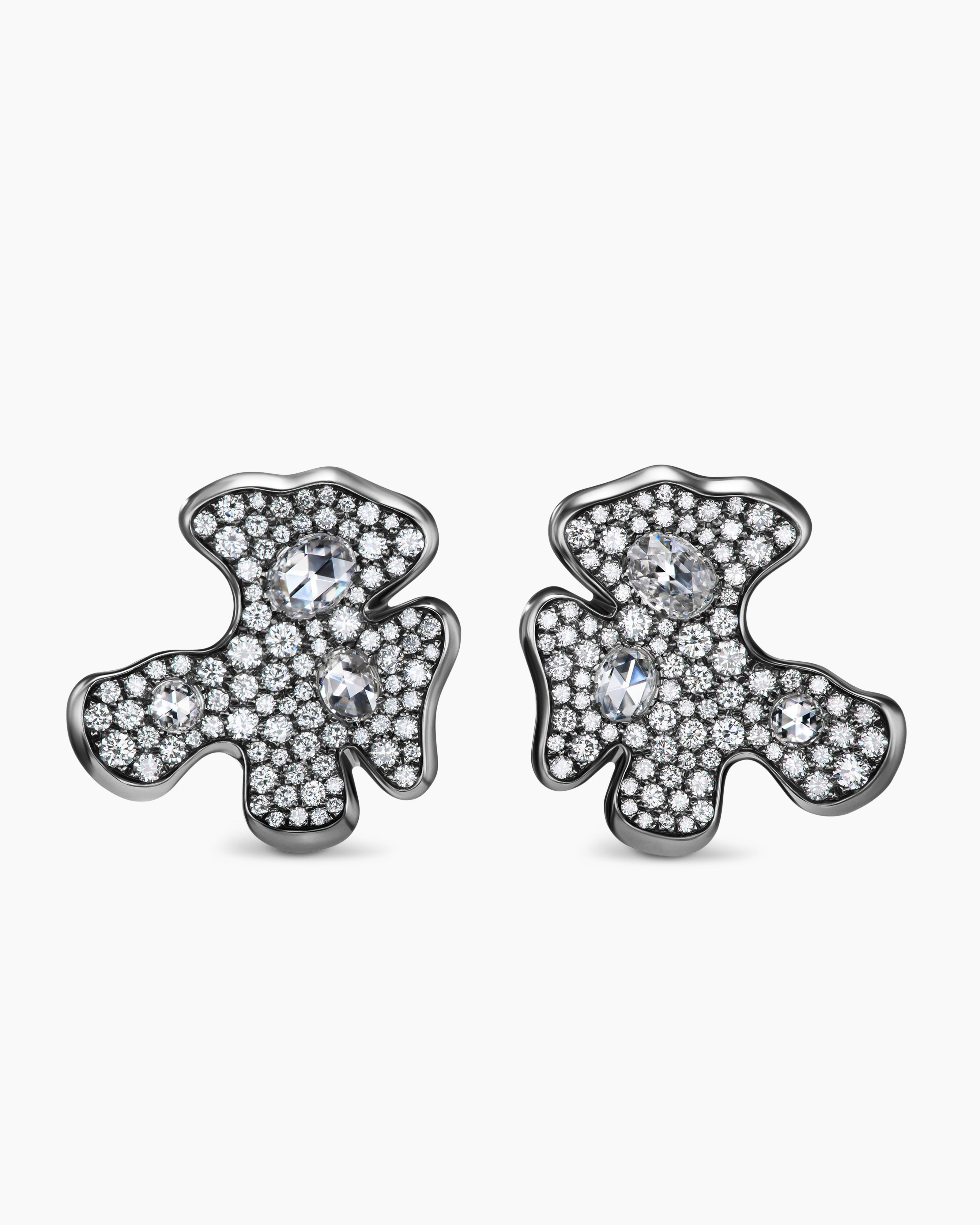 Petals Stud Earrings White Gold with Rhodiated Black and Diamonds