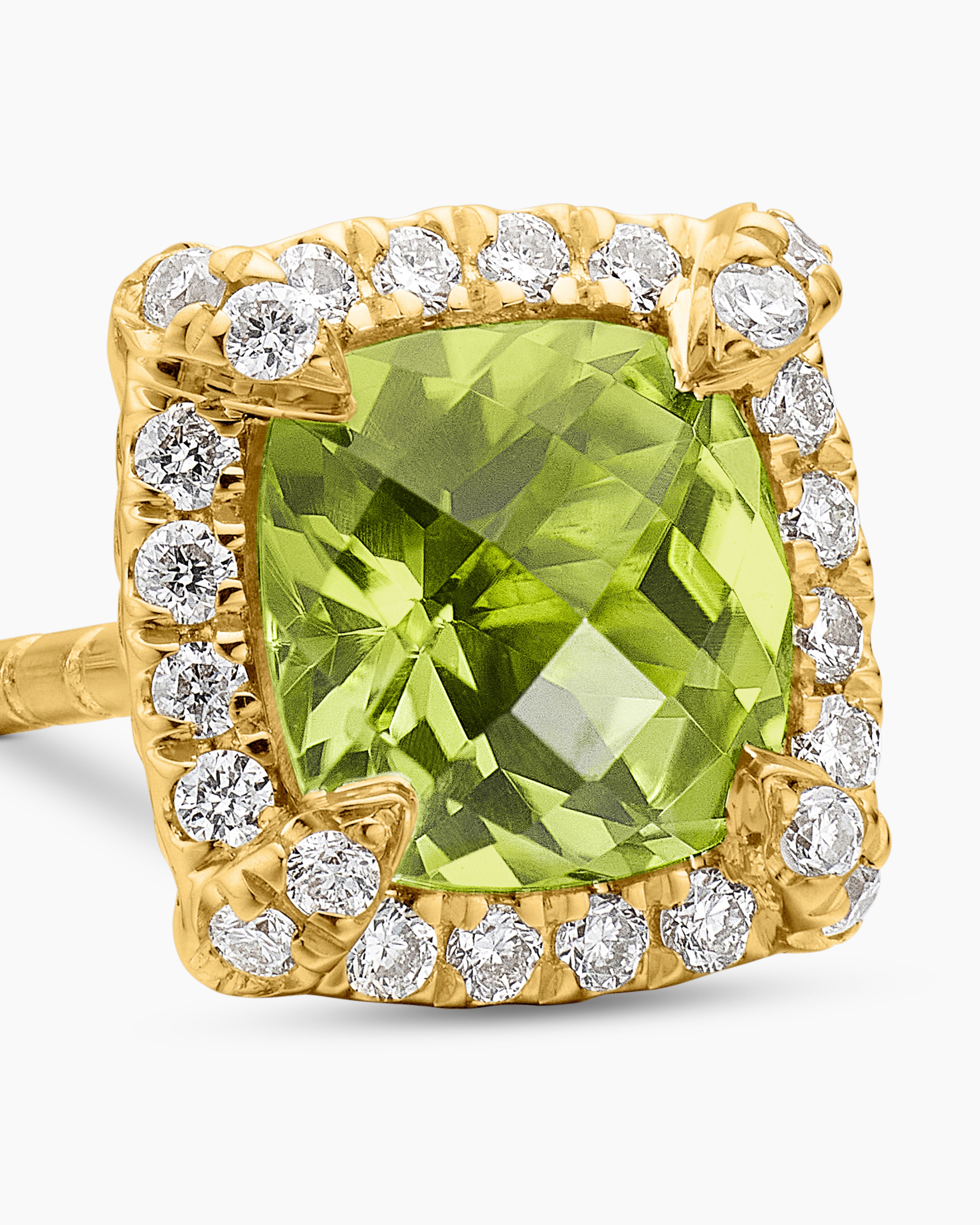 Petite Chatelaine® Pavé Bezel Stud Earrings 18K Yellow Gold with Peridot and Diamonds, 5mm