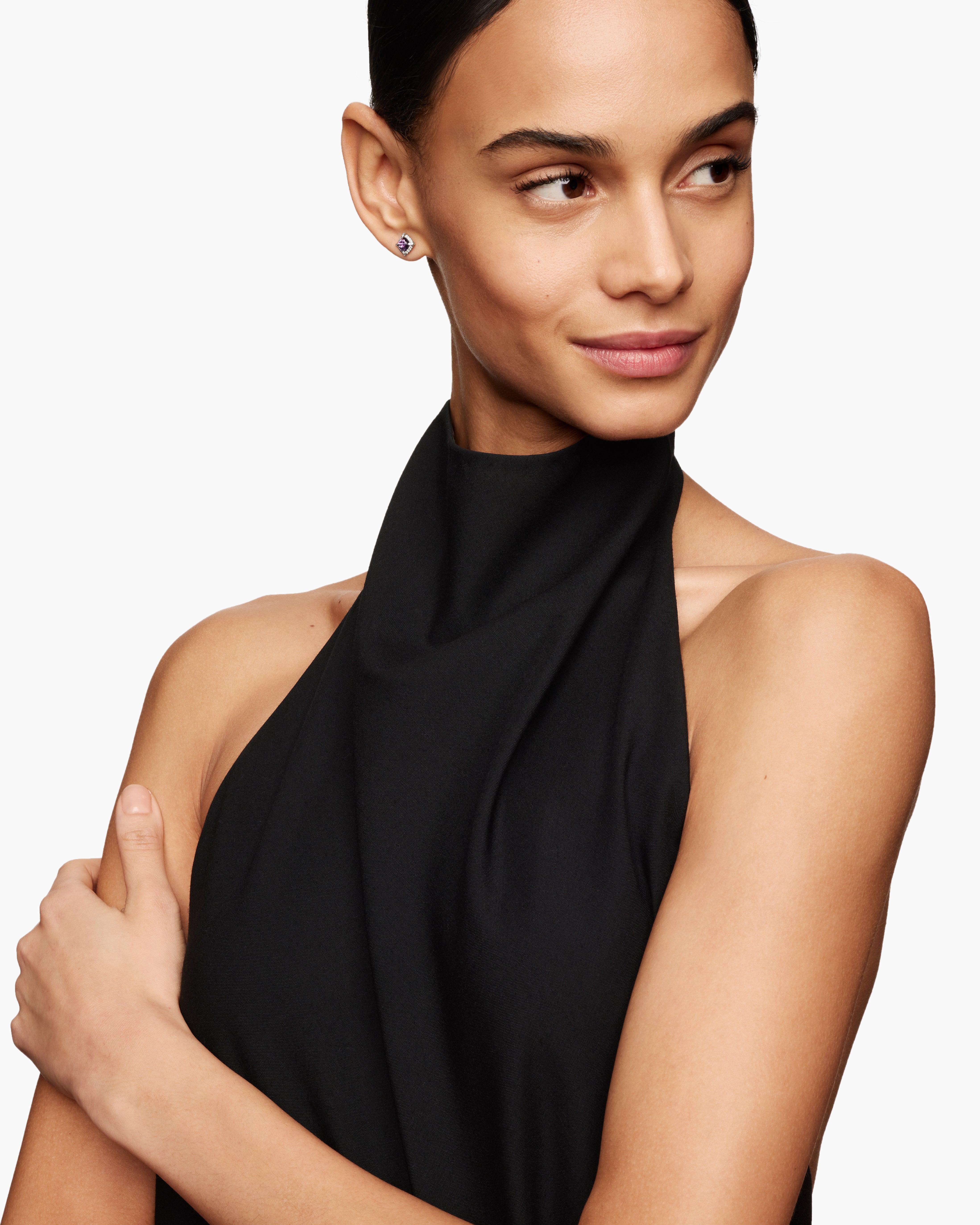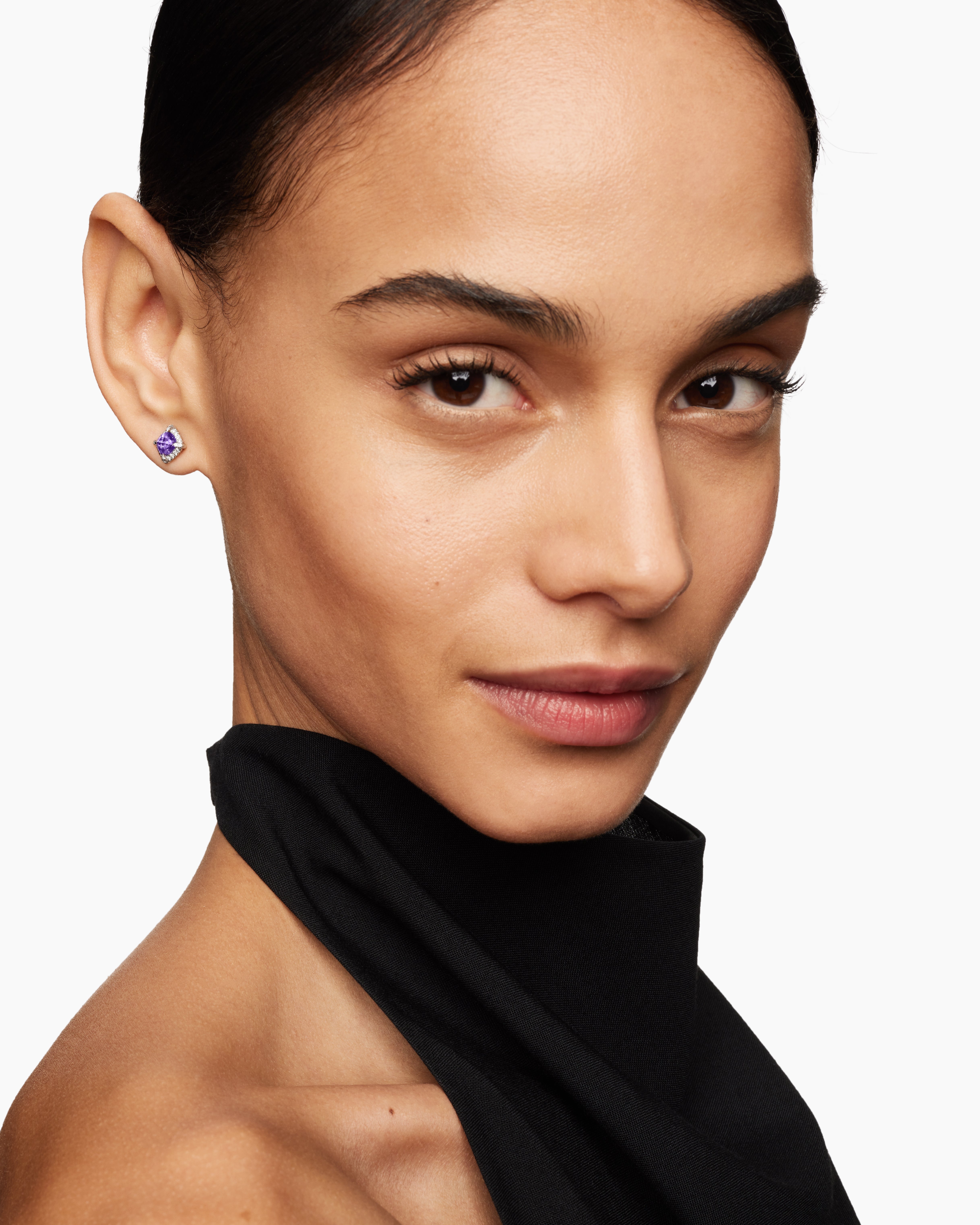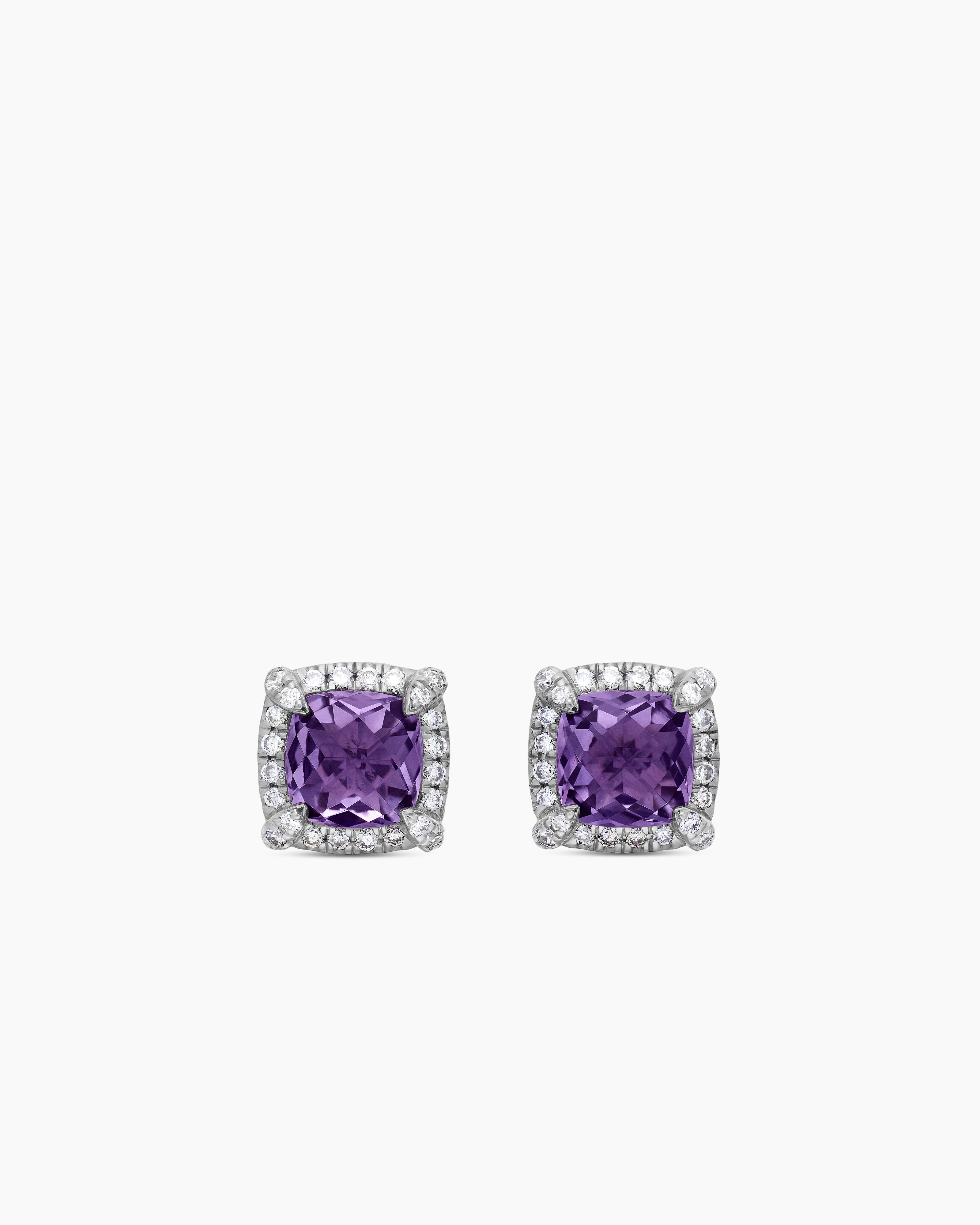 Petite Chatelaine® Pavé Bezel Stud Earrings Sterling Silver with Amethyst and Diamonds, 5mm