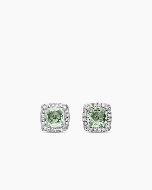 Petite Chatelaine® Pavé Bezel Stud Earrings Sterling Silver with Prasiolite and Diamonds, 5mm