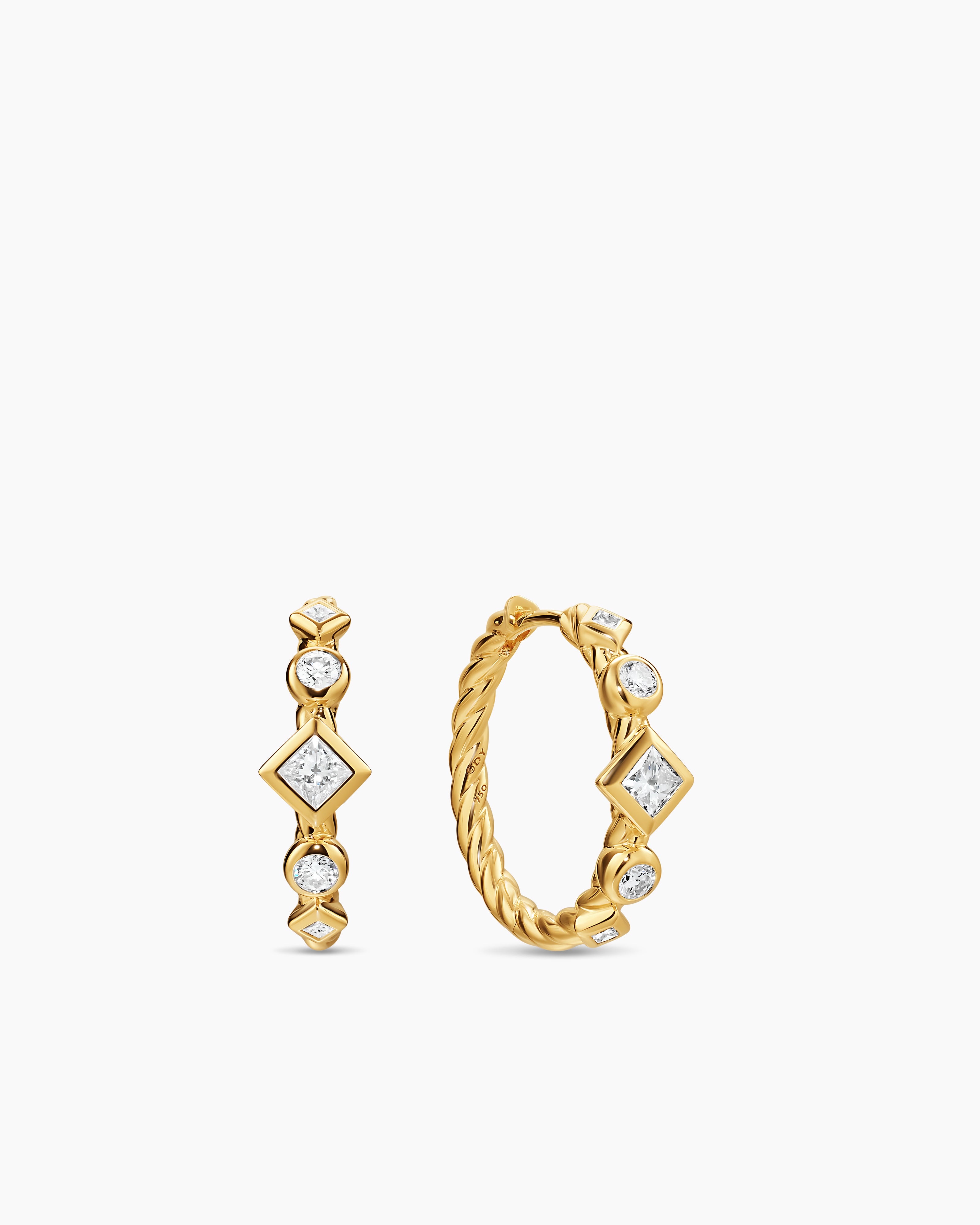 Petite Modern Renaissance® Hoop Earrings 18K Yellow Gold with Diamonds, 21mm