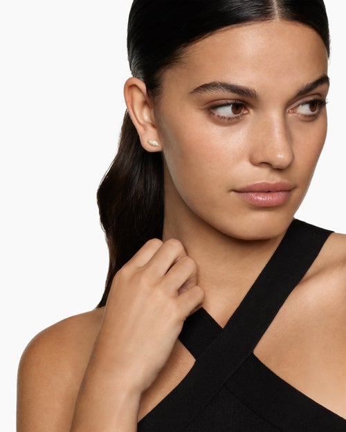 Petite Pavé Flute Stud Earrings 18K Yellow Gold with Diamonds, 10.6mm