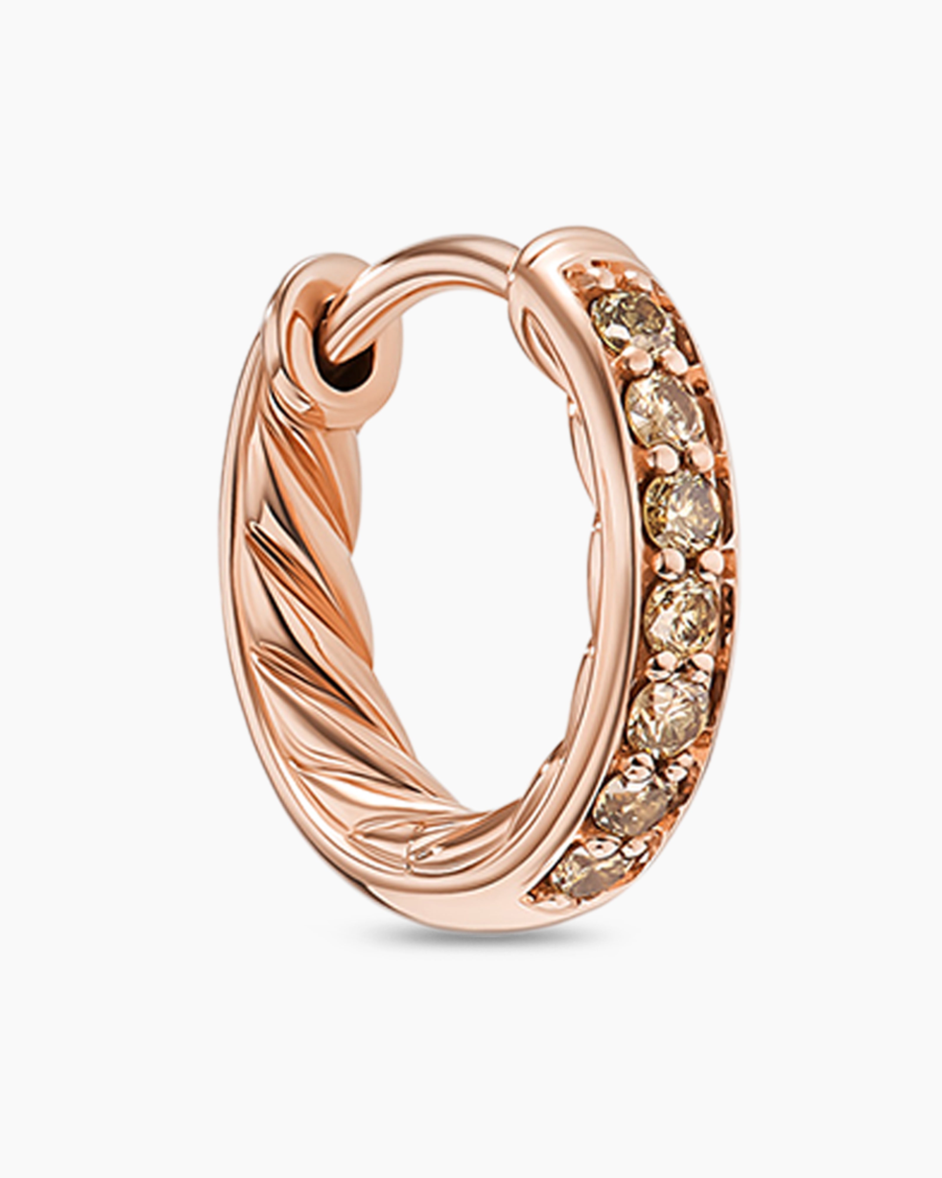 Petite Pavé Huggie Hoop Earrings 18K Rose Gold with Cognac Diamonds, 12mm