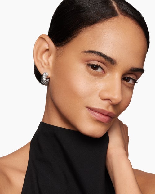 Sculpted Cable Shrimp Earrings Sterling Silver, 20.5mm