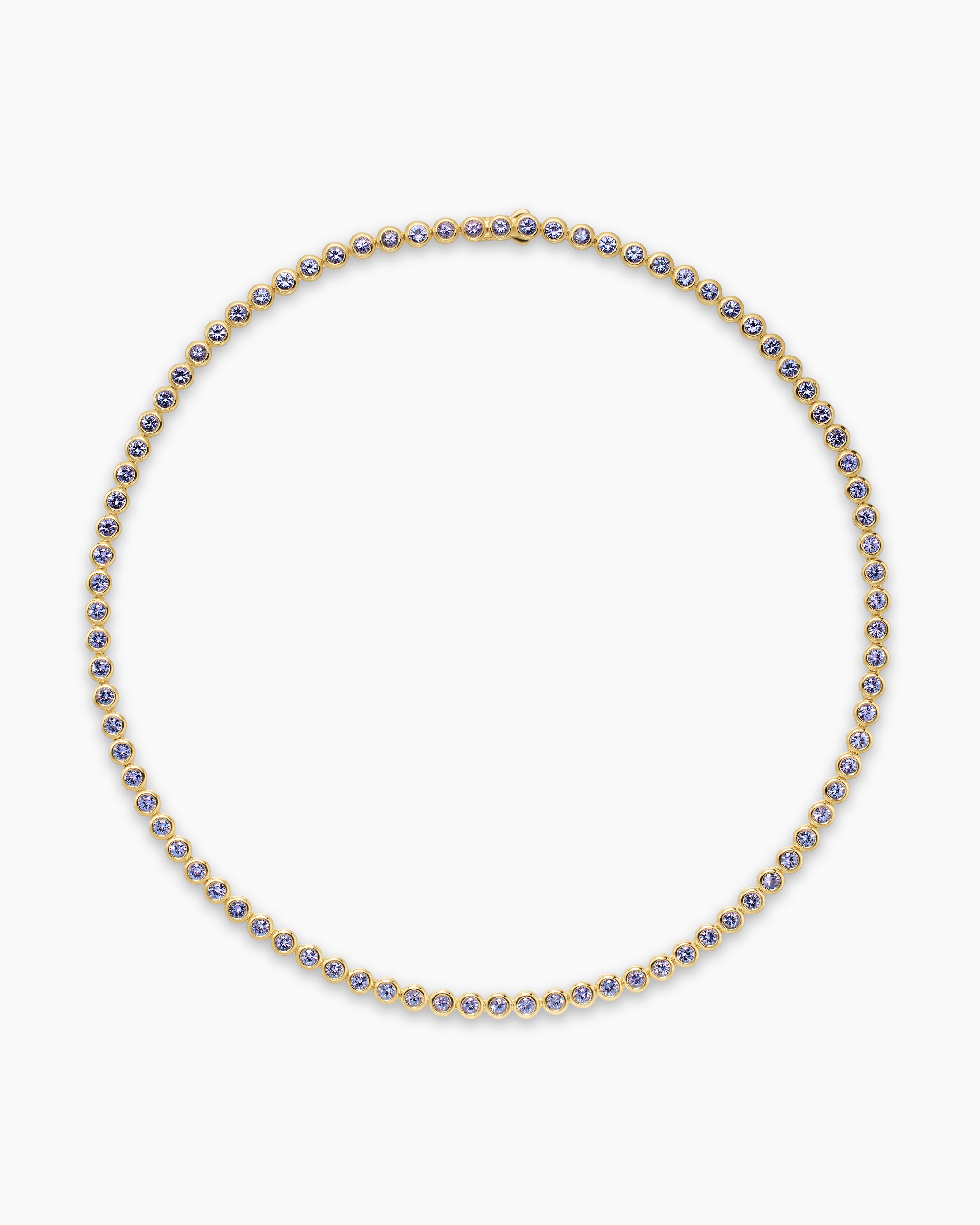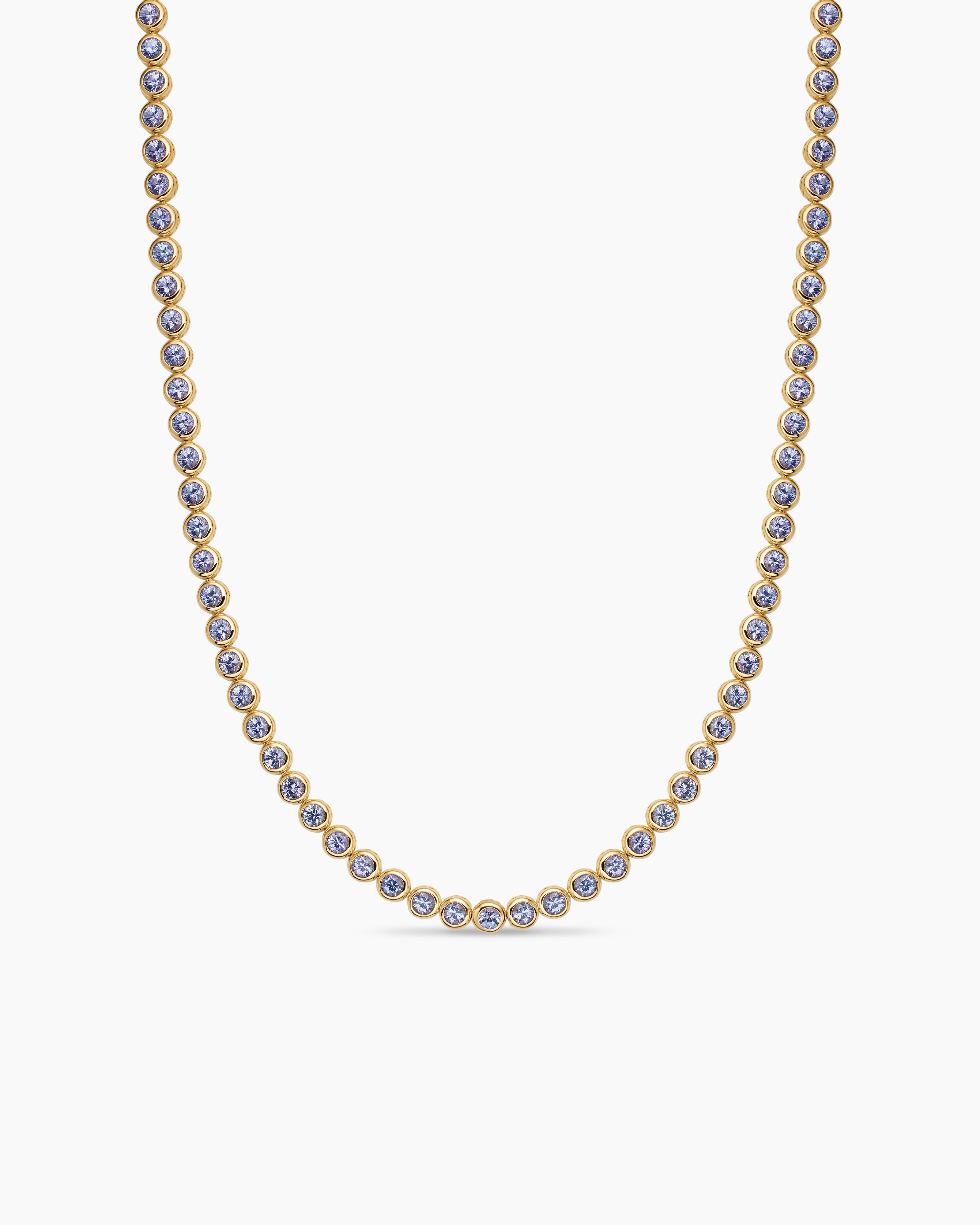 Bezel Set Tennis Necklace 18K Yellow Gold with Tanzanite, 4.7mm